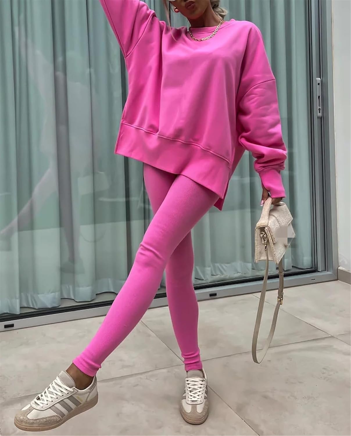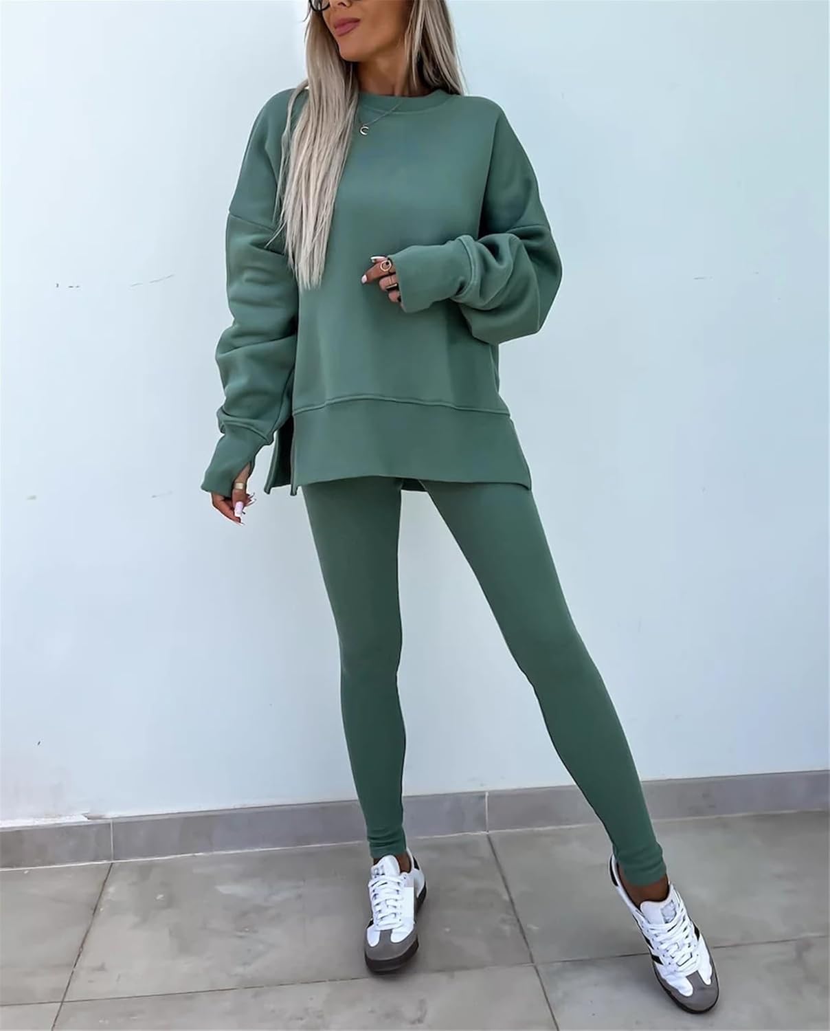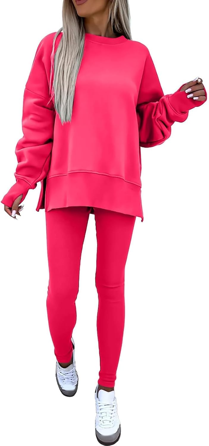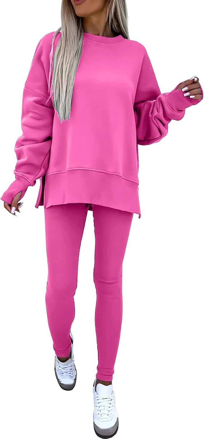 • Sweatshirt and Leggings Set for Womens 2 Piece Outfits, Outfits Side Split Oversized Sweatshirt set