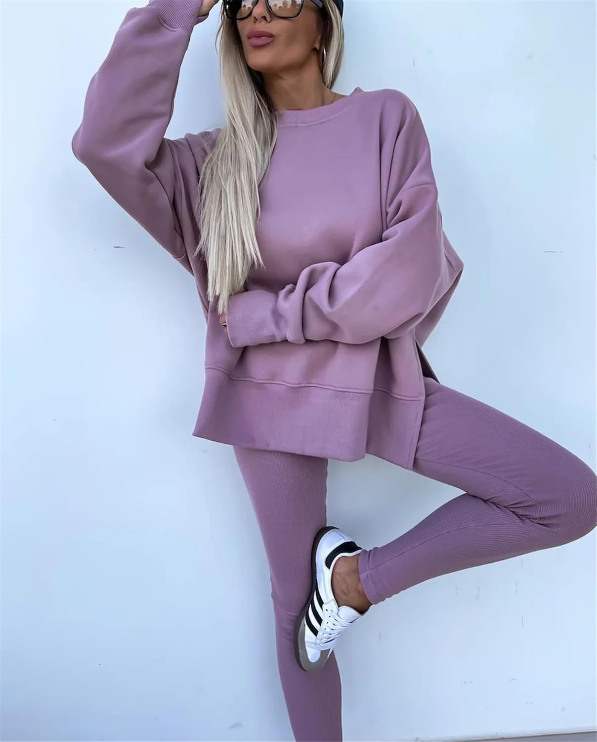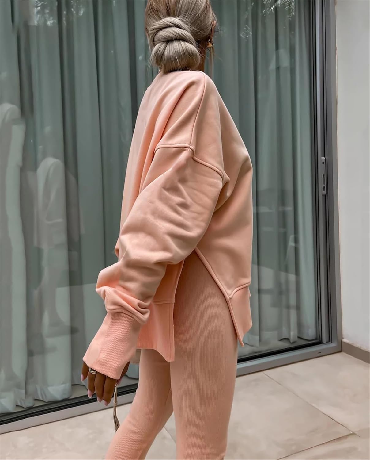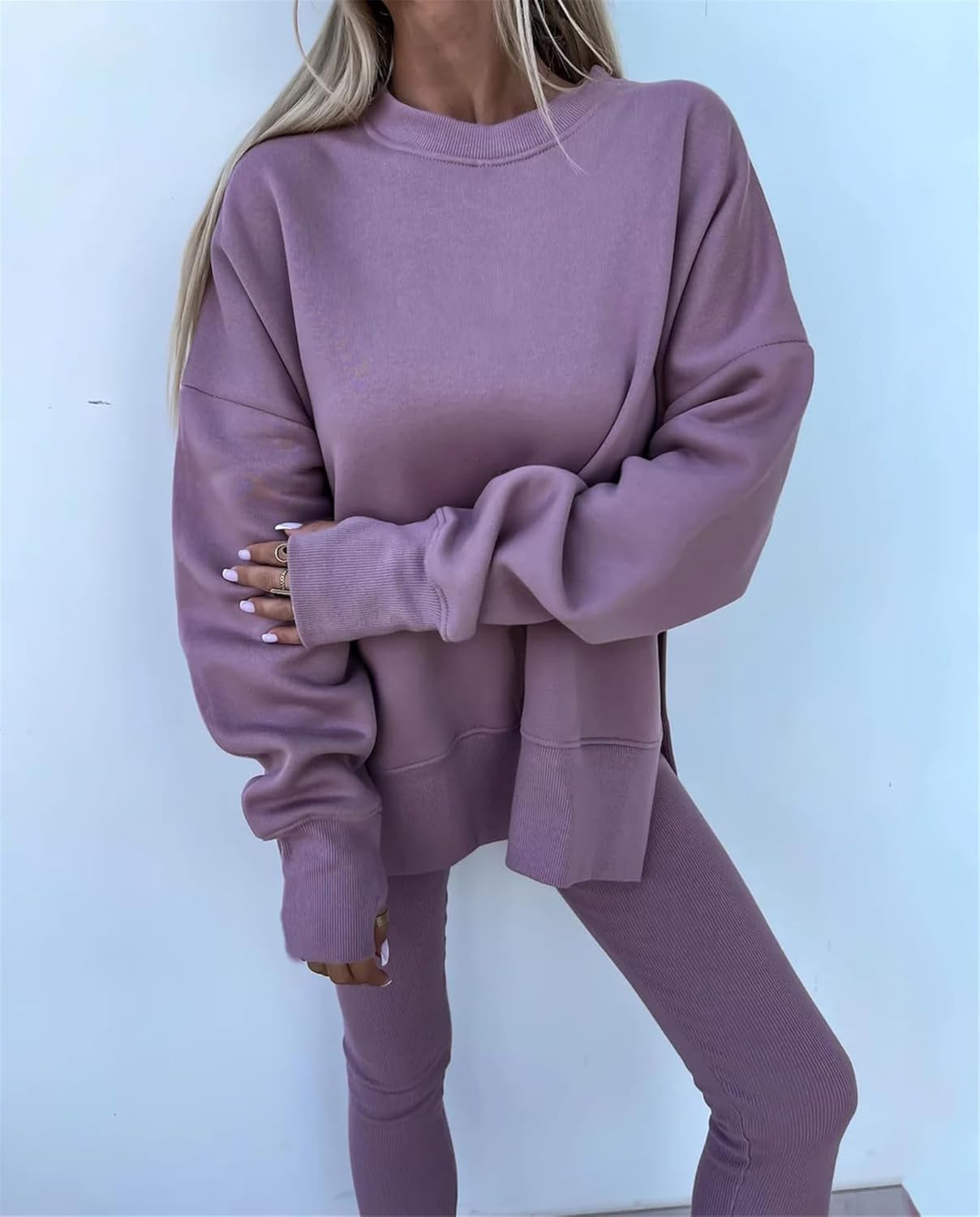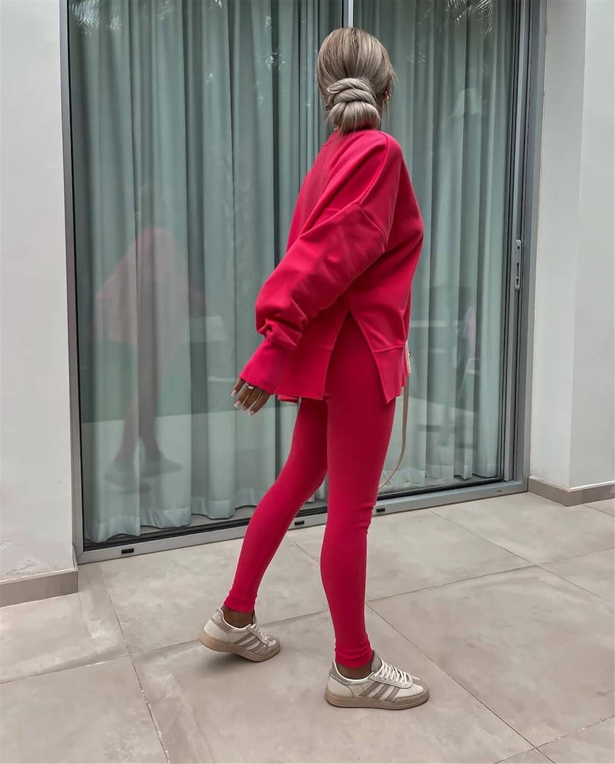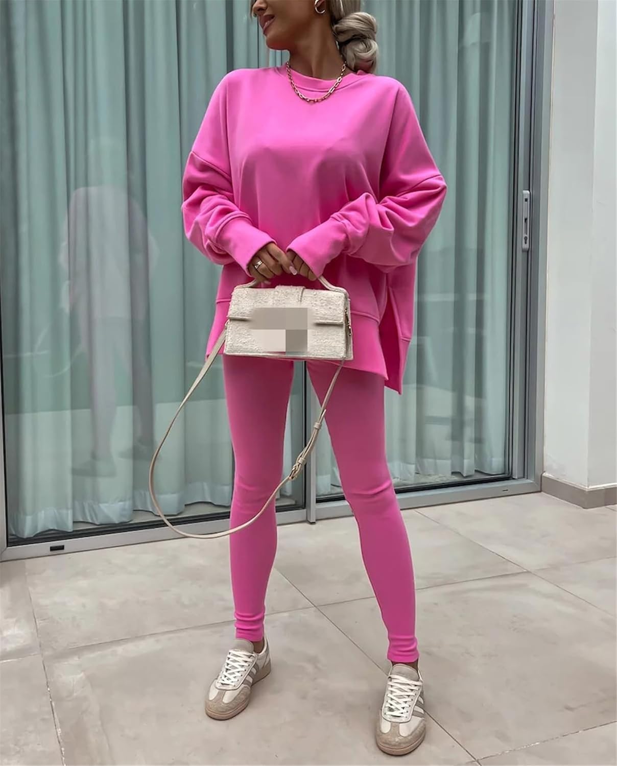 • Sweatshirt and Leggings Set for Womens 2 Piece Outfits, Outfits Side Split Oversized Sweatshirt set