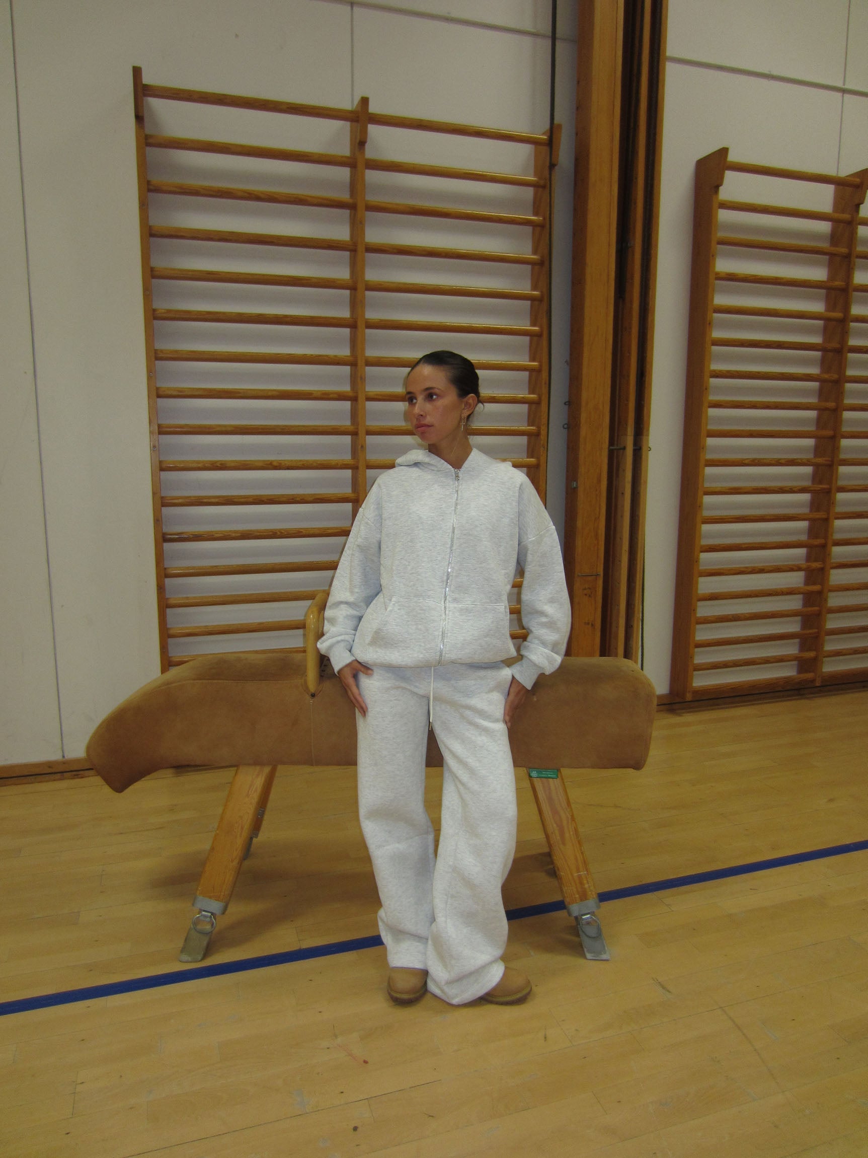 These loose-fitting sweatpants in light grey combine comfort and style in the best way. With their straight and baggy fit, they offer a relaxed and cool look, perfect for both everyday wear and relaxation. The pants are adjustable at the waist with drawstrings, providing a flexible fit. The sporty vibe and relaxed fit make them ideal for both active days and laid-back moments.