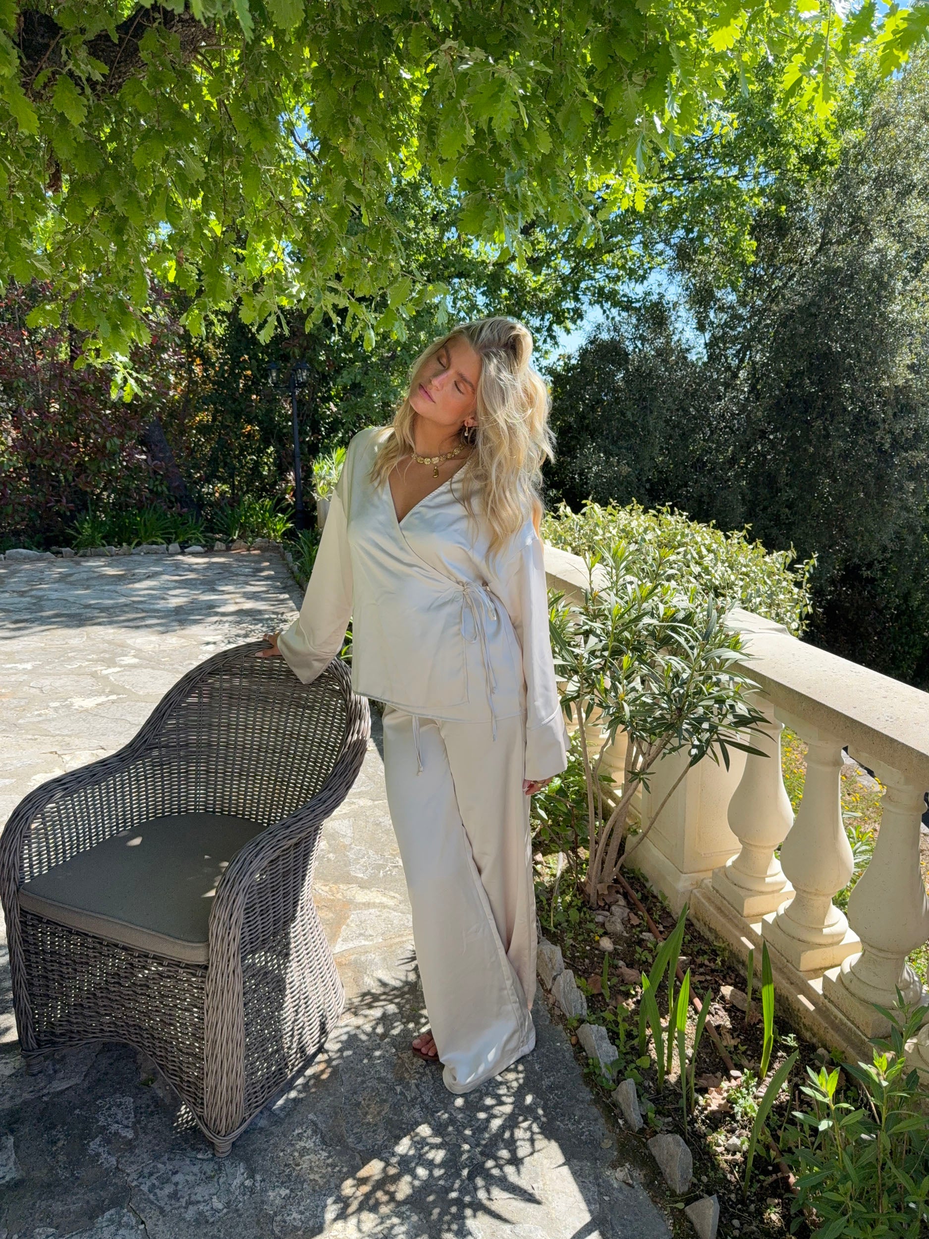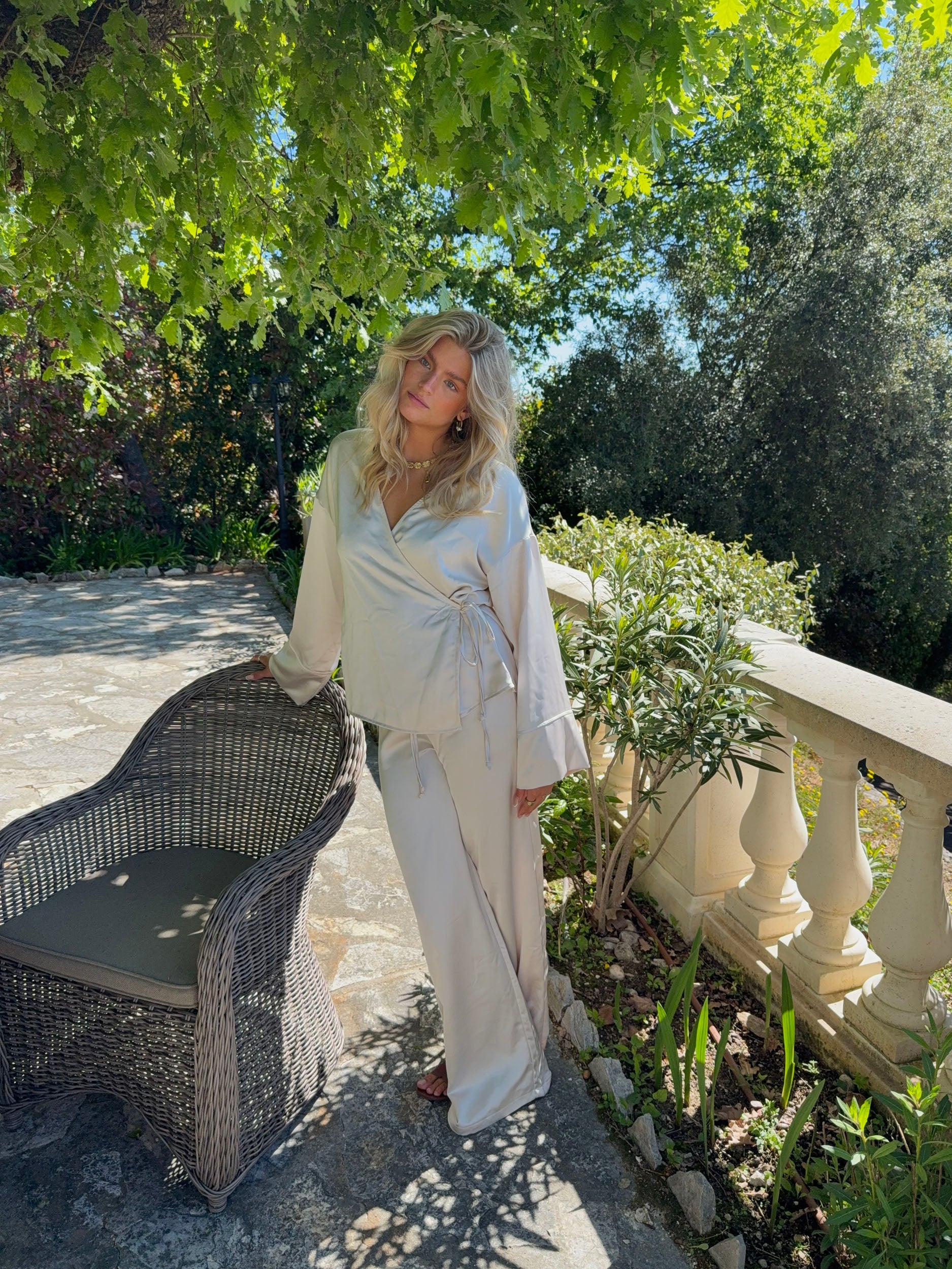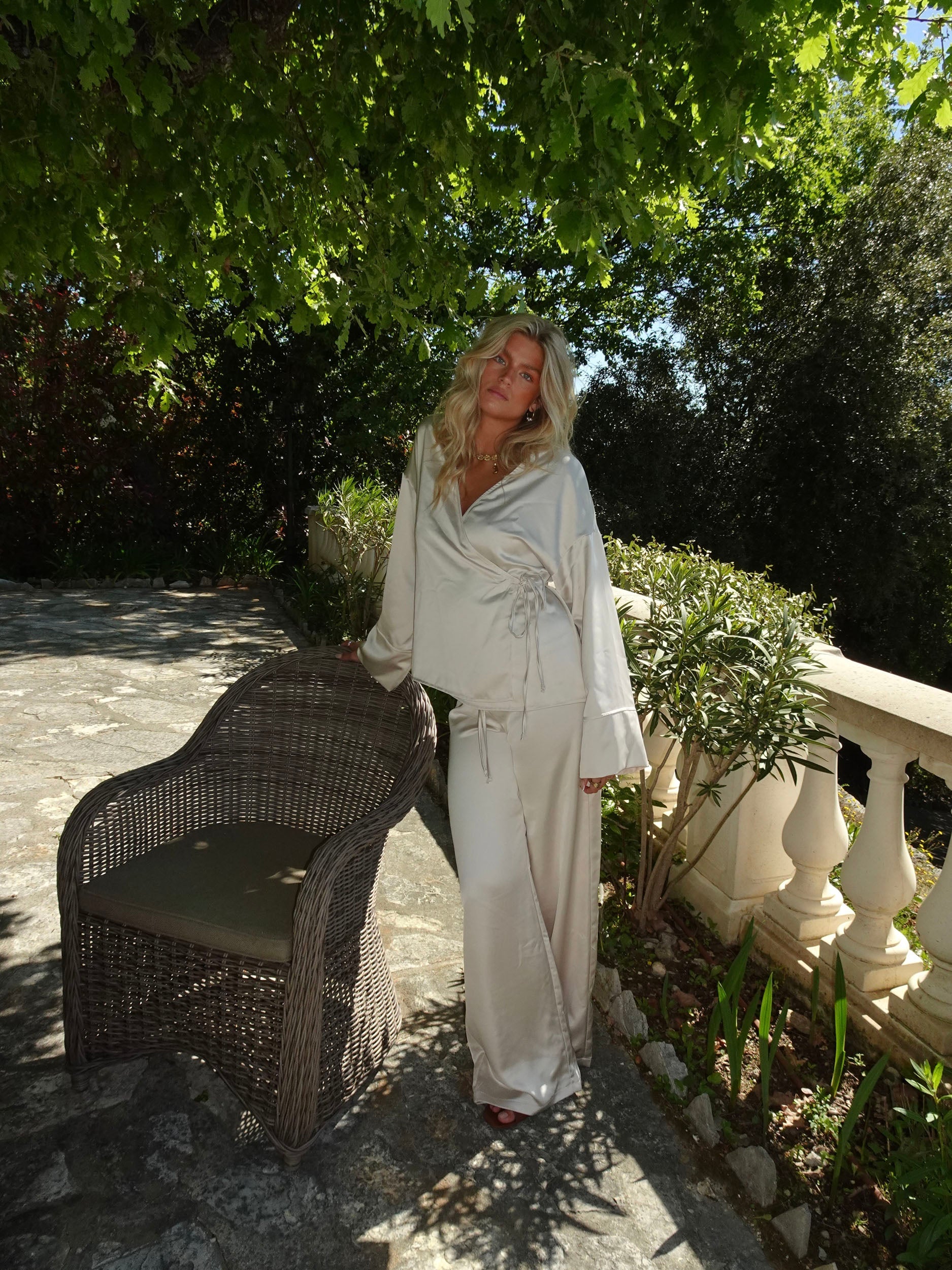 These loose pants are designed for optimal comfort with an elasticated waistband and a decorative tie. The wide fit and long length create a modern silhouette, while the lightweight fabric makes them incredibly comfortable to wear. Perfect for both lounging and stylish everyday looks. Pairs perfectly with our "Rianah satin blouse with ties."