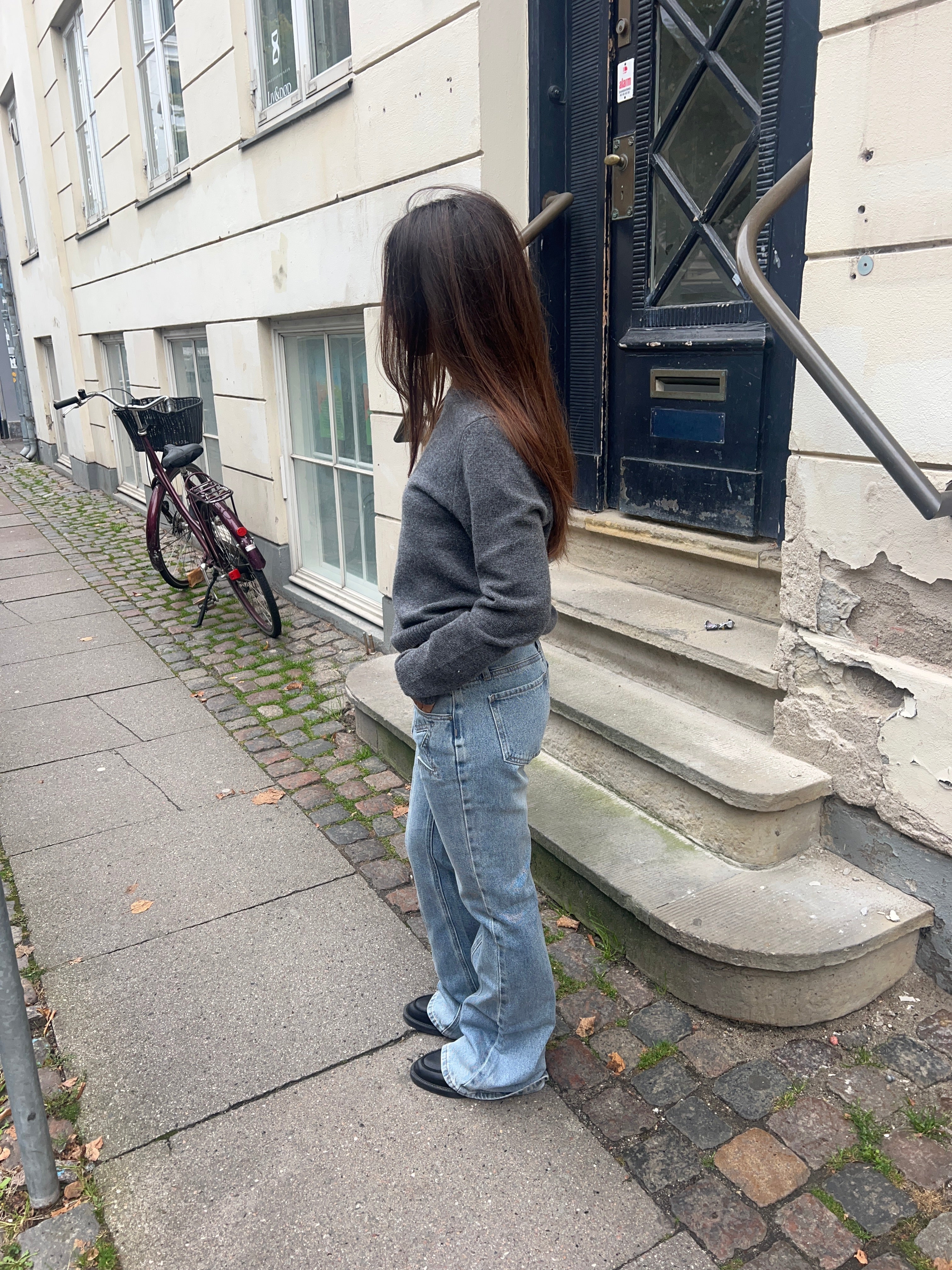 The coolest jeans with stars on the front. The trousers have a flare fit and a mid-waist. They close with a button and zipper.
