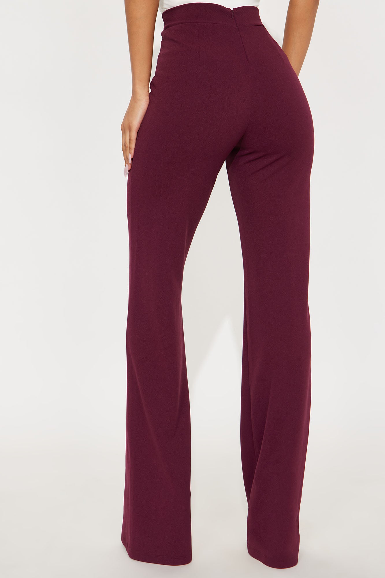 Available In Black, Burgundy, Charcoal, Chocolate, Hunter Green, Ivory, Mauve, Navy, Oatmeal, Olive 1, Plum, Red, Royal, Rust, Sage, Taupe And White.Available in Regular, Tall, and Petite InseamsTall: 36" InseamHigh RisePintuck FrontHidden Back ZipperStretch95% Polyester 5% SpandexImported