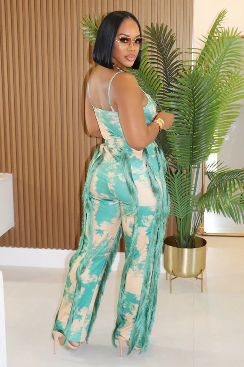 Tie Dye Cami Top Fringe High-Rise Pants Vacation 2pcs Set-Fuchsia