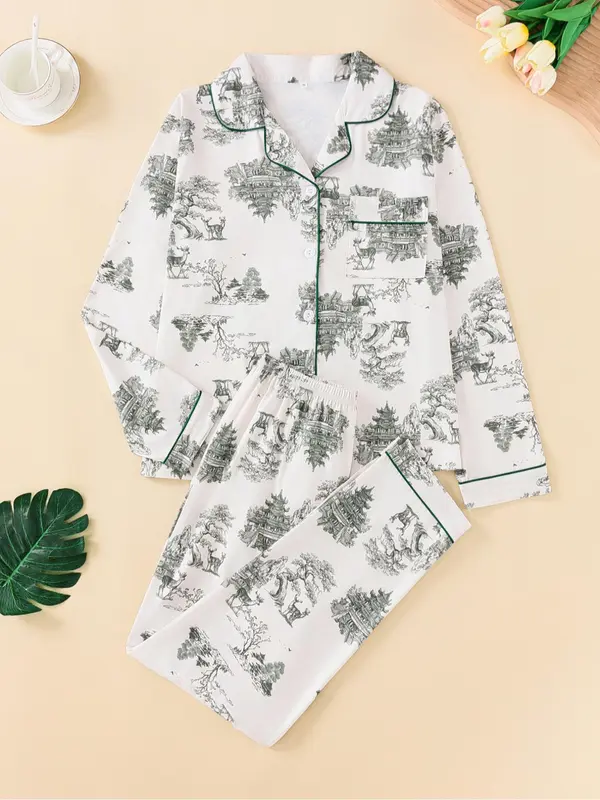 [Practical Pockets]: This two-piece pajama set features convenient pockets for storing everyday essentials, enhancing practicality without sacrificing style.