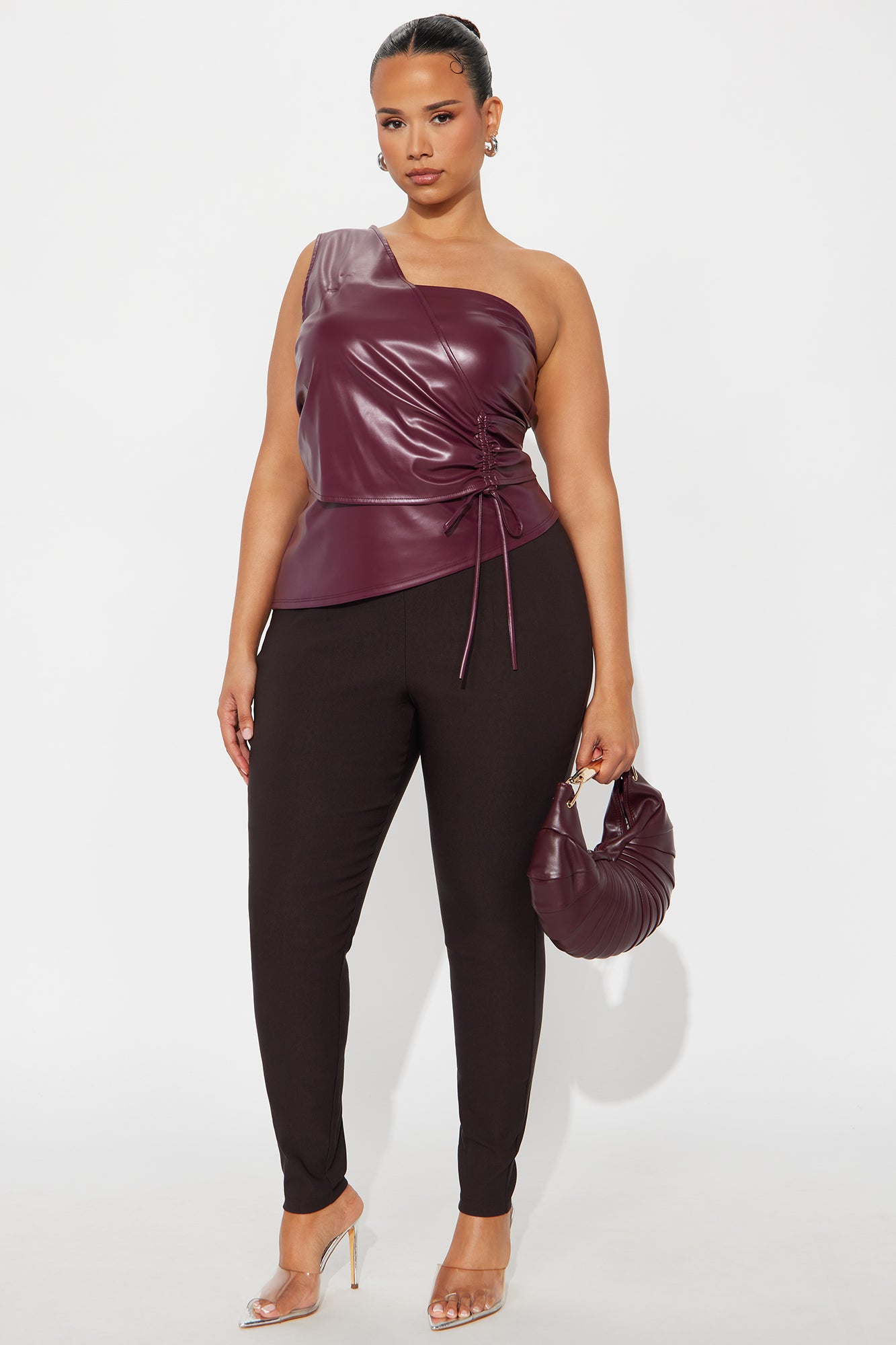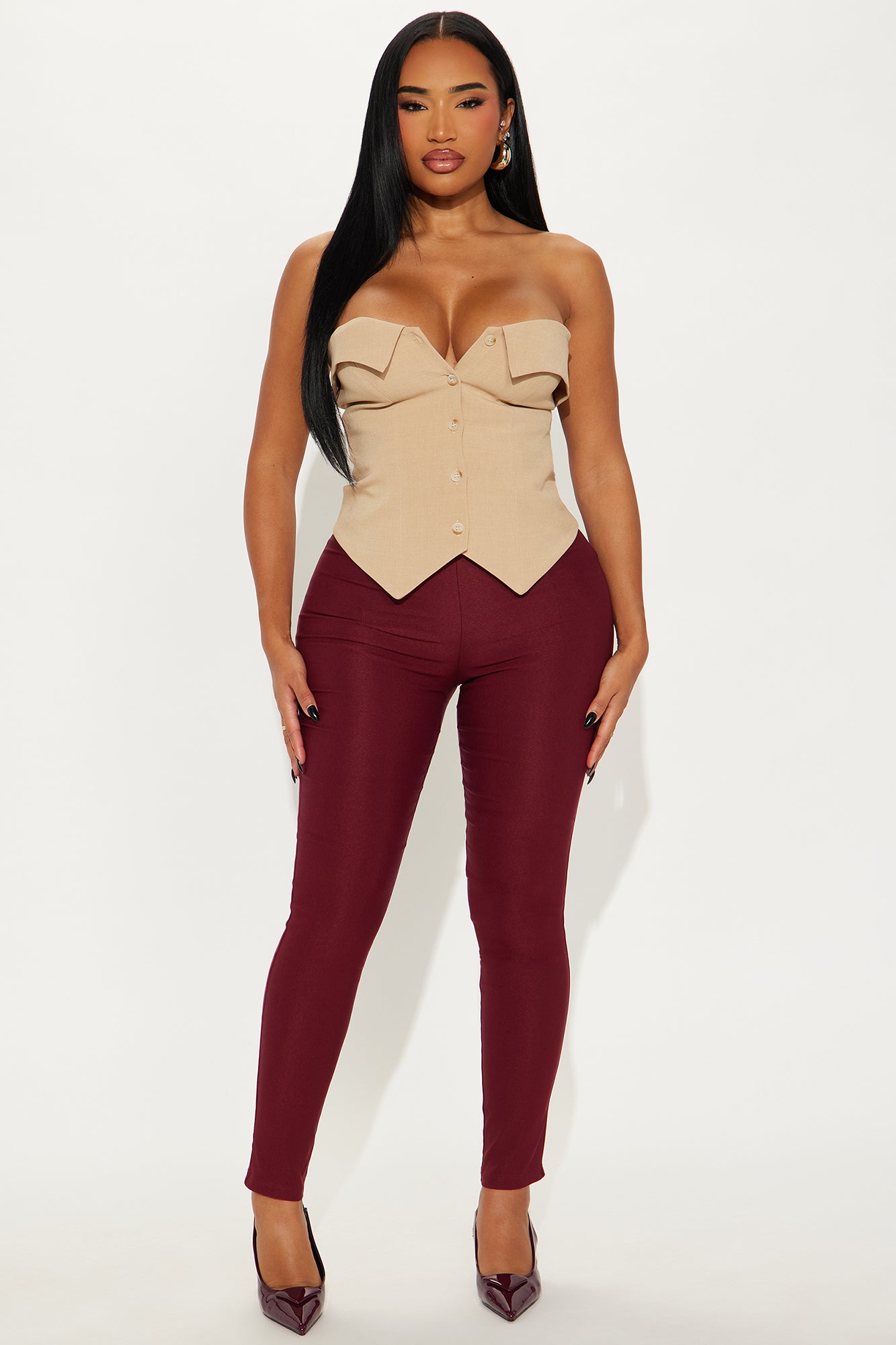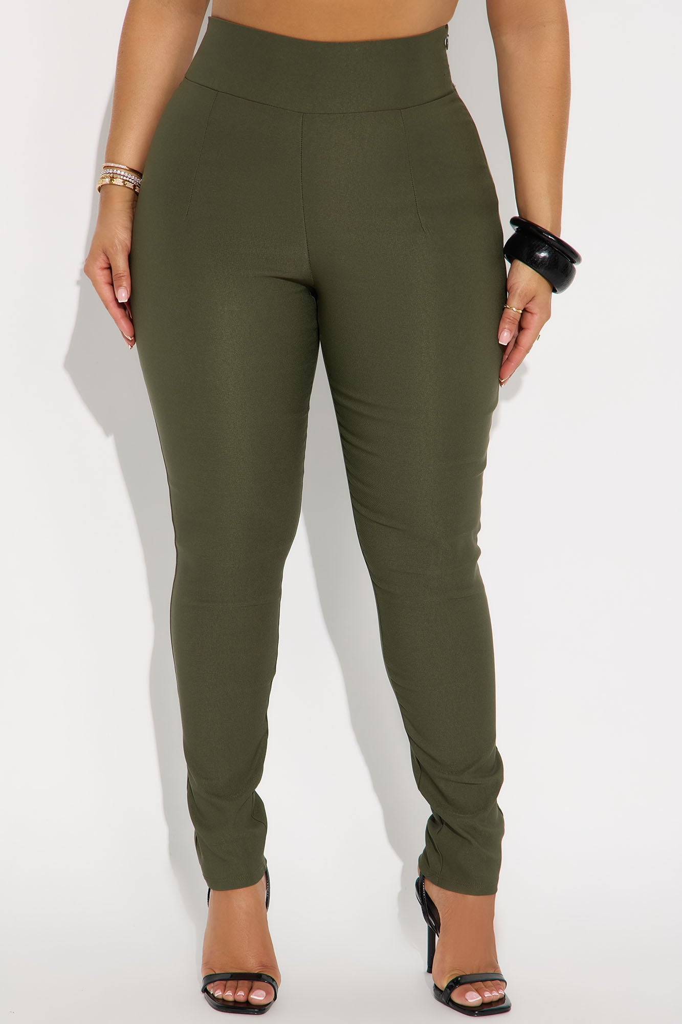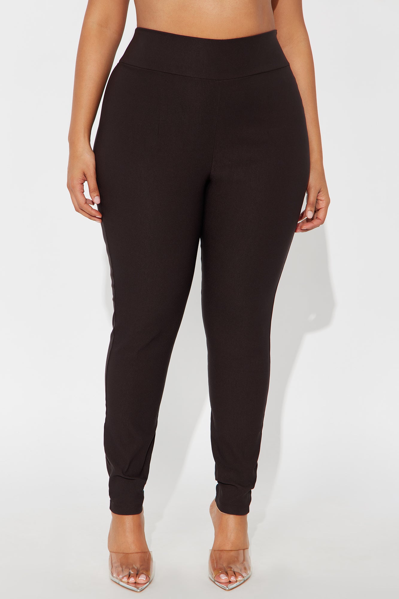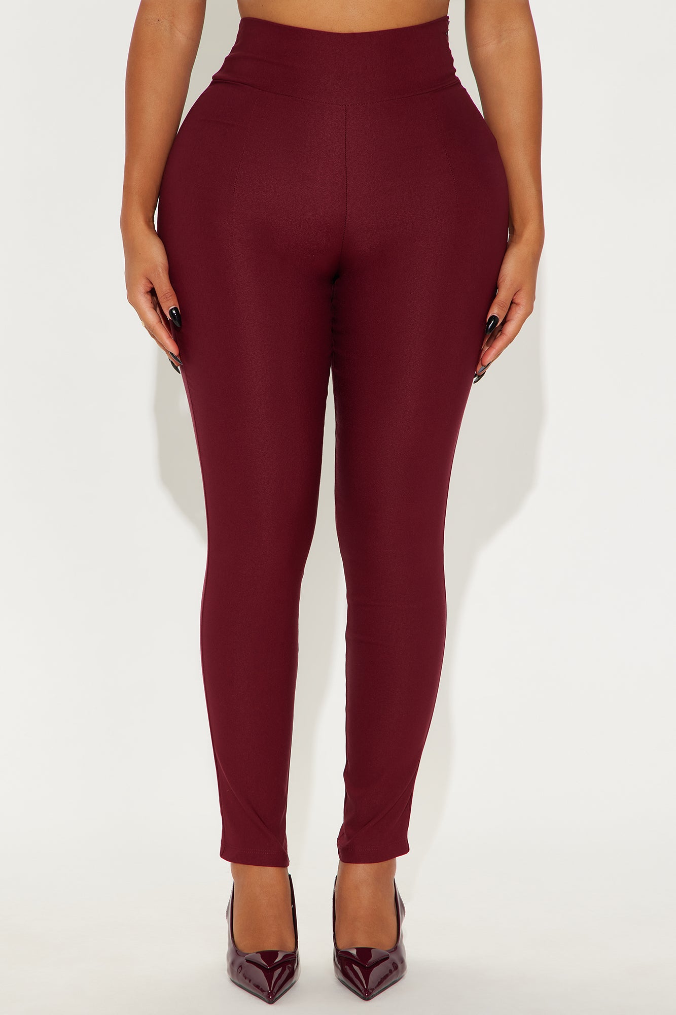 Available In Black, Burgundy, Chocolate, Olive, Rust, Taupe And Teal.Super High- RiseSide ZipperMillennium FabricSkinny Leg28" InseamDisclaimer: Plus Only; Runs Small Shop One Size Up74% Rayon 22% NylonImported
