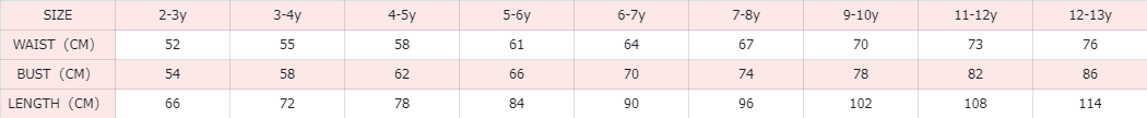Girls' SIZE CHART