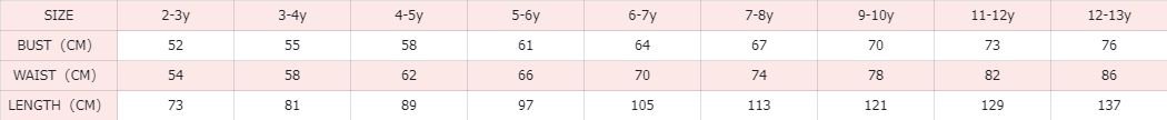 Girls' SIZE CHART