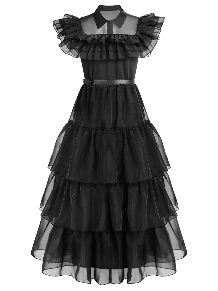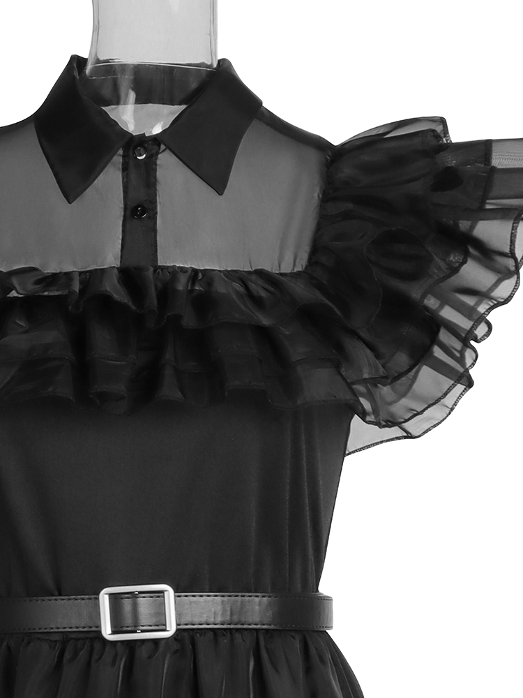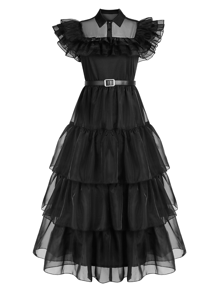 Wednesday Addams Gothic Outfits Ruffle Little Black Dress