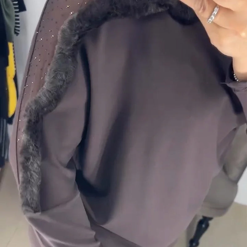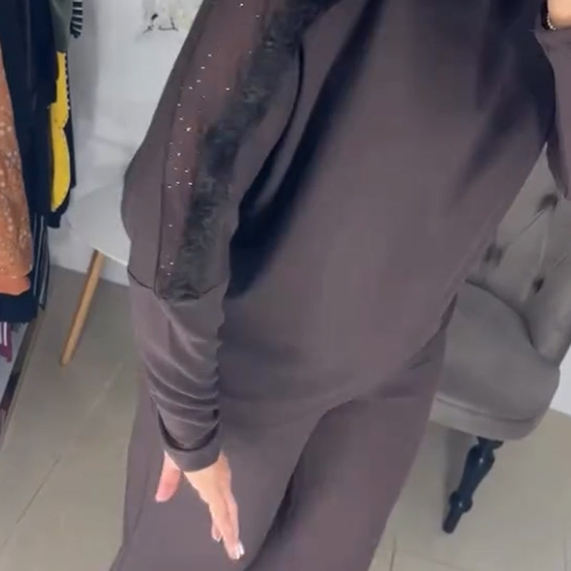 ELEGANT PATCHWORK DESIGN - Features a unique combination of sheer mesh, sparkling accents, and plush trim on the shoulders. This sophisticated mix of textures elevates the casual suit, adding a touch of glamour to your everyday look.