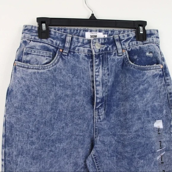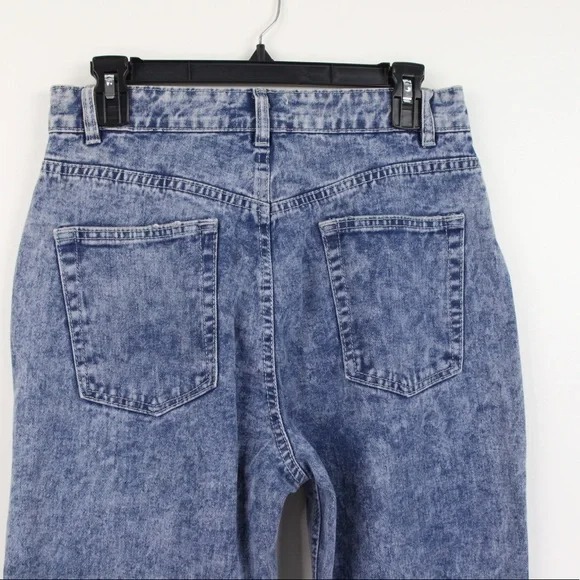 Womens Plus Size Acid Wash High Waist Mom Jeans Casual Denim Blue