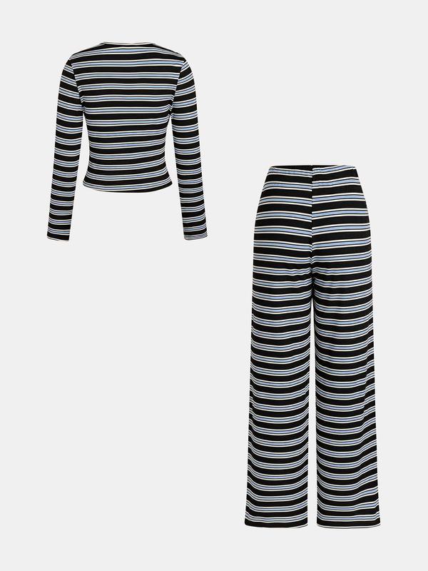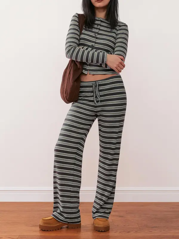 【Eye-catching Stripes】: Featuring a striped pattern that adds a distinctive visual element, this set enhances your wardrobe with modern flair.