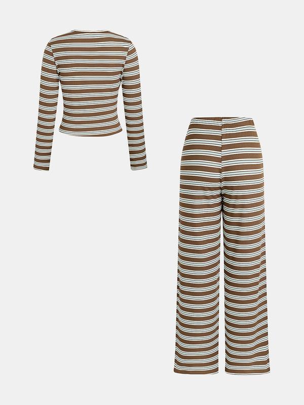 • Women's Casual Colorblock Striped Long Sleeve Top & Loose-Fit Pants Set, Perfect for Holidays, Commuting, Daily Wear