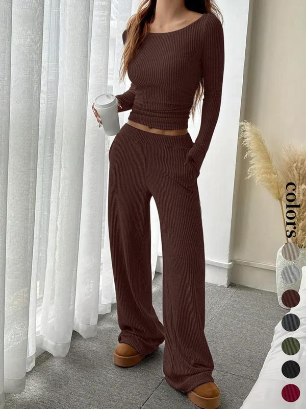 • Women's Casual Striped Long Sleeve Top & Loose Pocket Pants Set, European Style Womenswear, Comfortable for Daily Wear