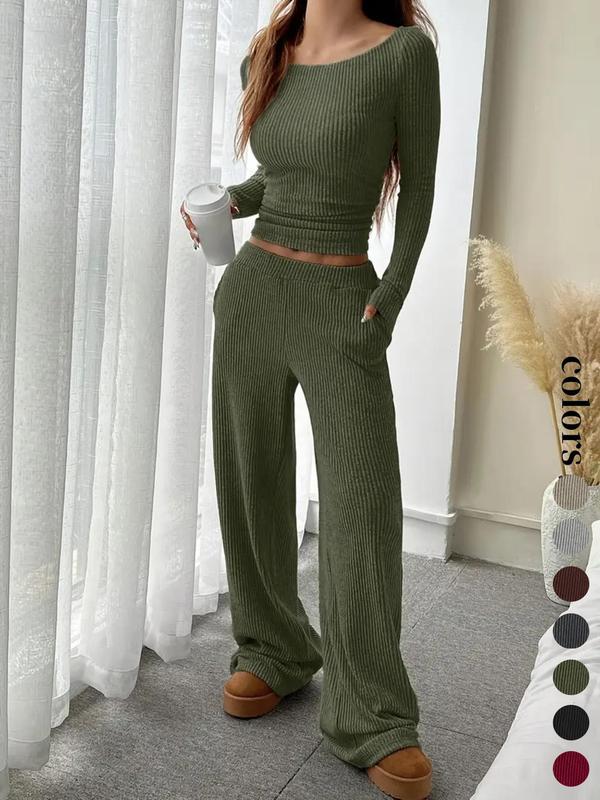 • Women's Casual Striped Long Sleeve Top & Loose Pocket Pants Set, European Style Womenswear, Comfortable for Daily Wear