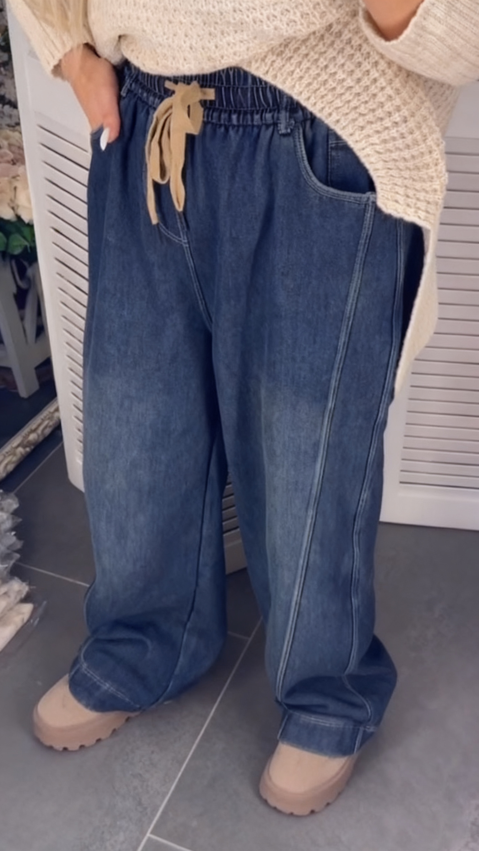Womens Drawstring Elastic Washed Casual Jeans