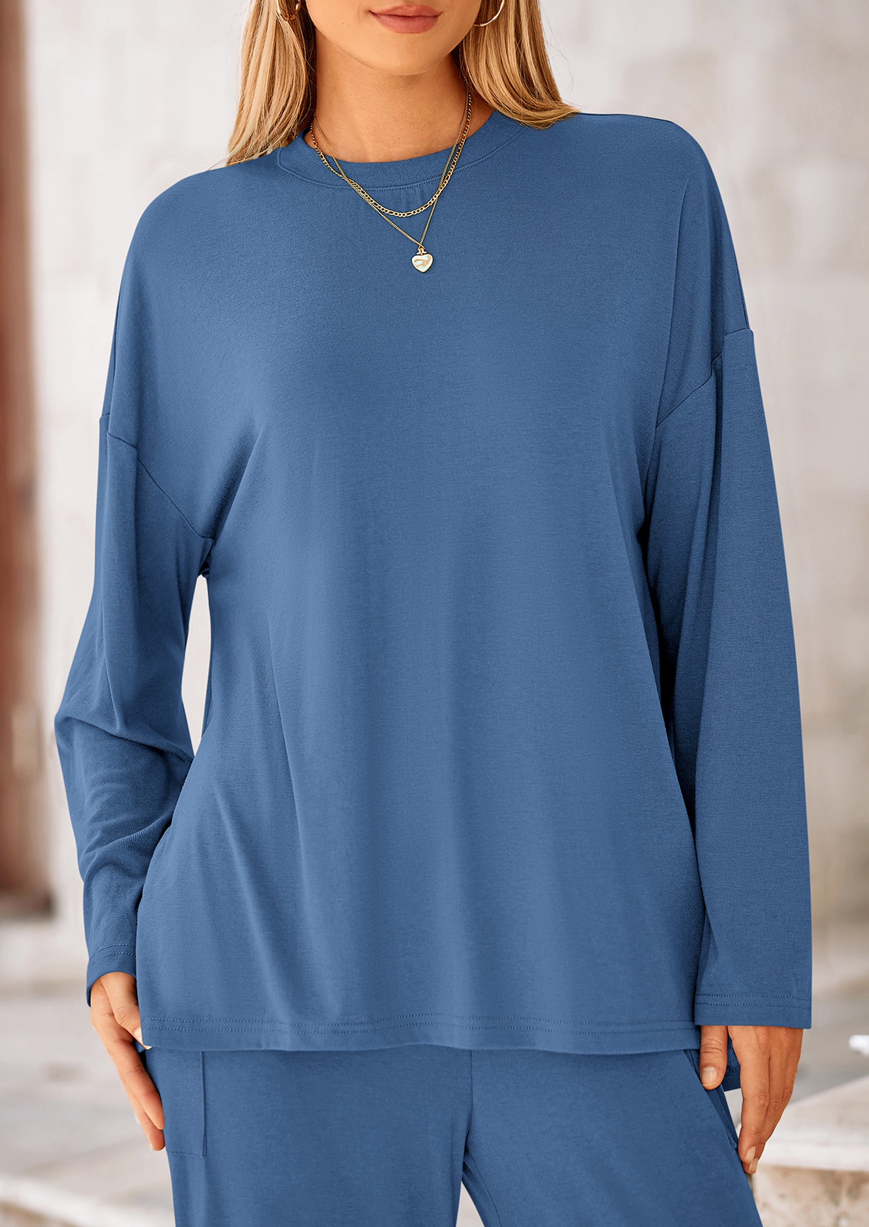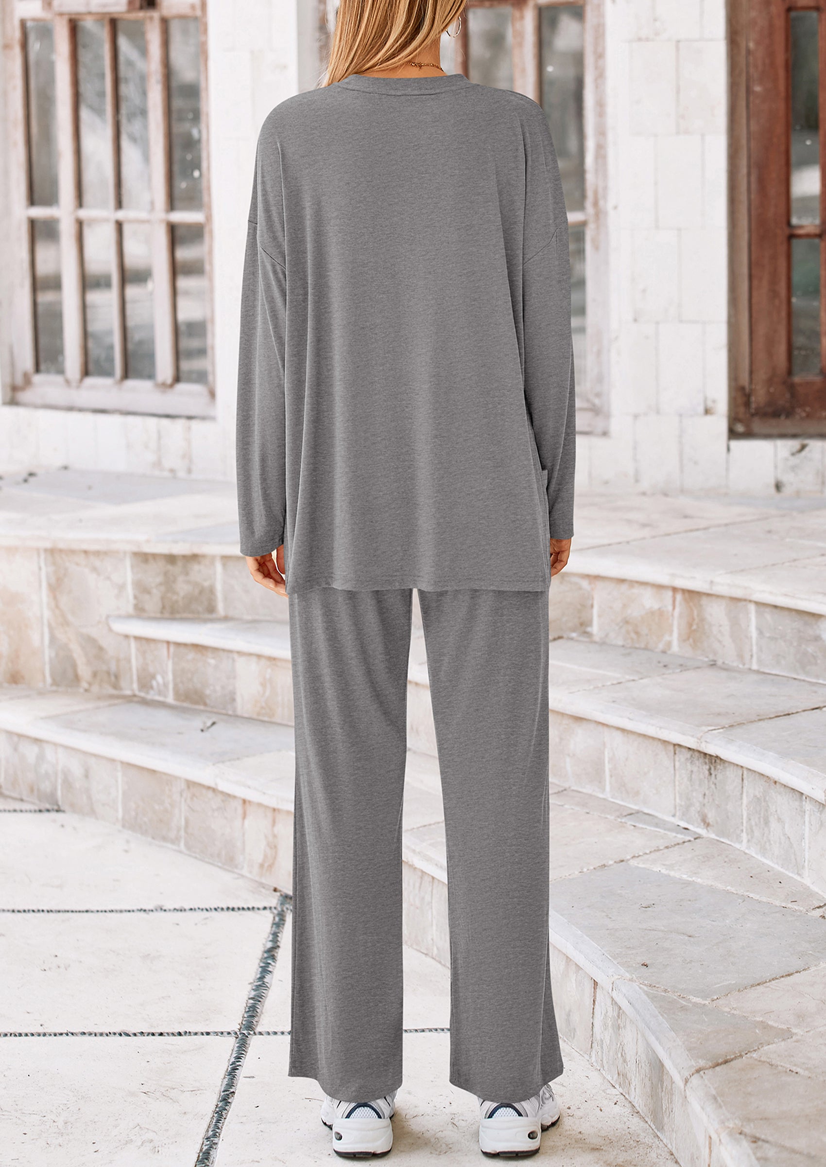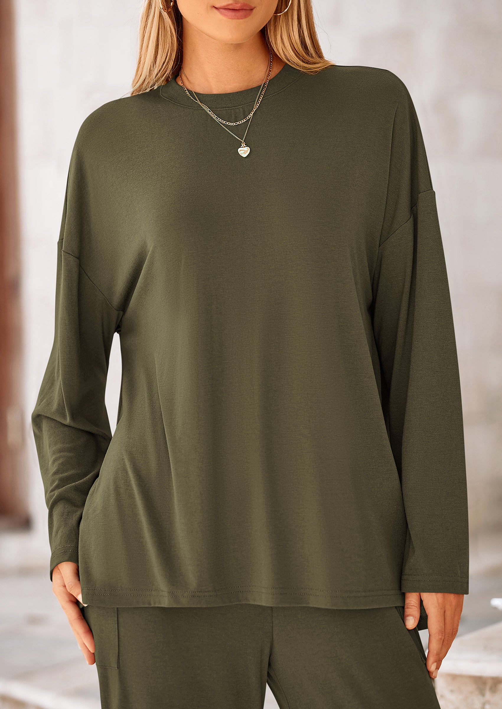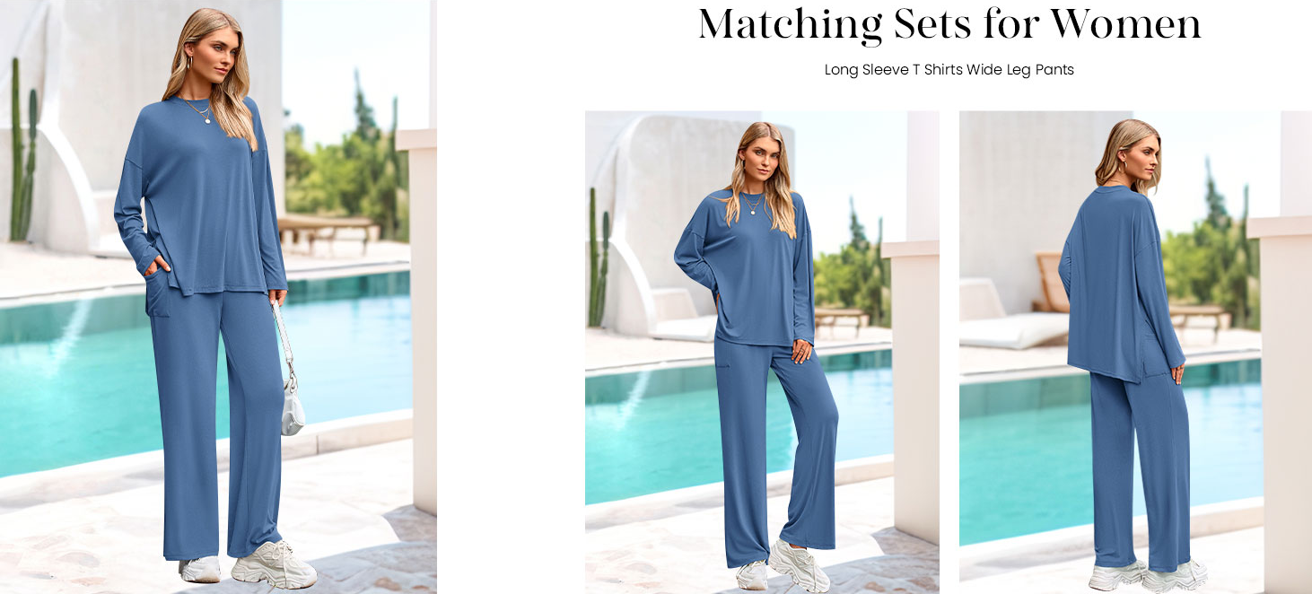 DETAILS: Casual Tops For Women Featured High Low Slit Hem Provide A Trendy And Modern Touch To The Basic Outfit. High Waisted Pants For Women With An Elastic Waistband Ensuring A Comfy And Flexible Fit. Pockets Add Functionality To The Two Piece Outfits