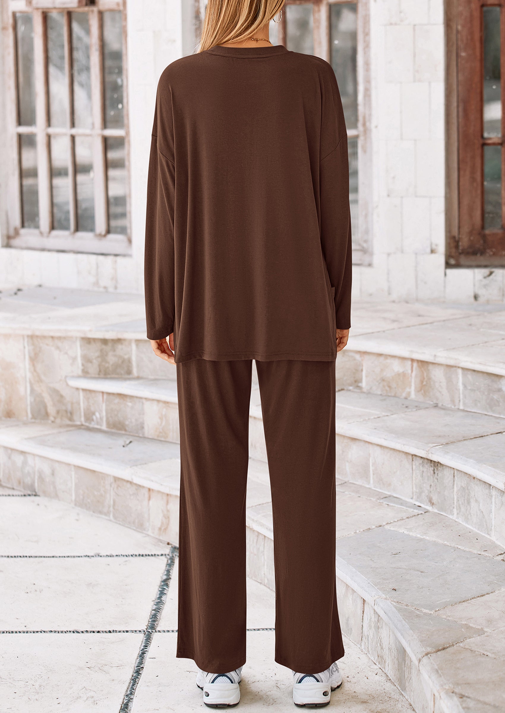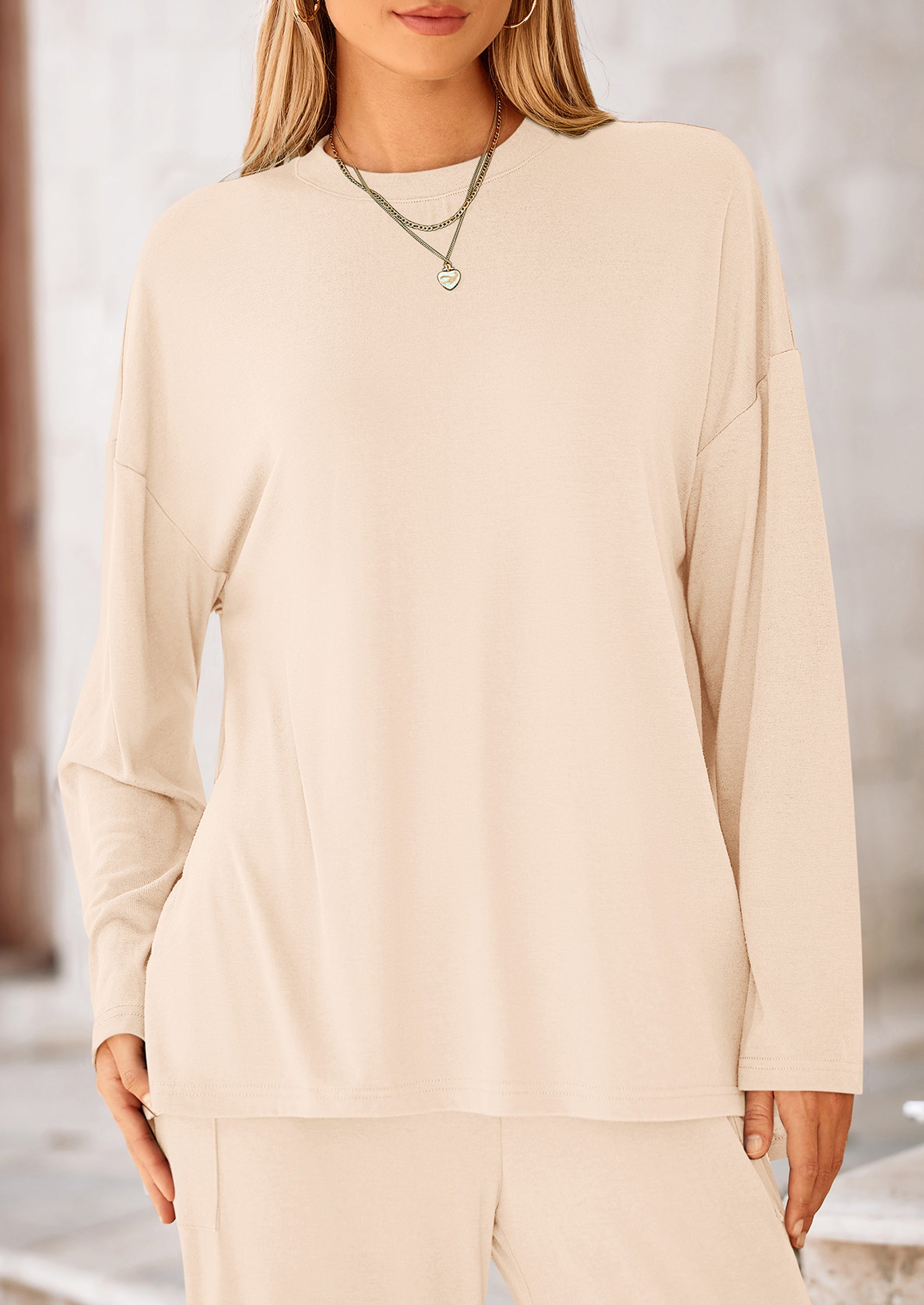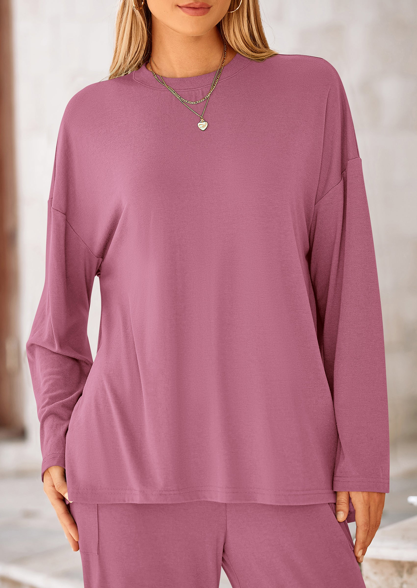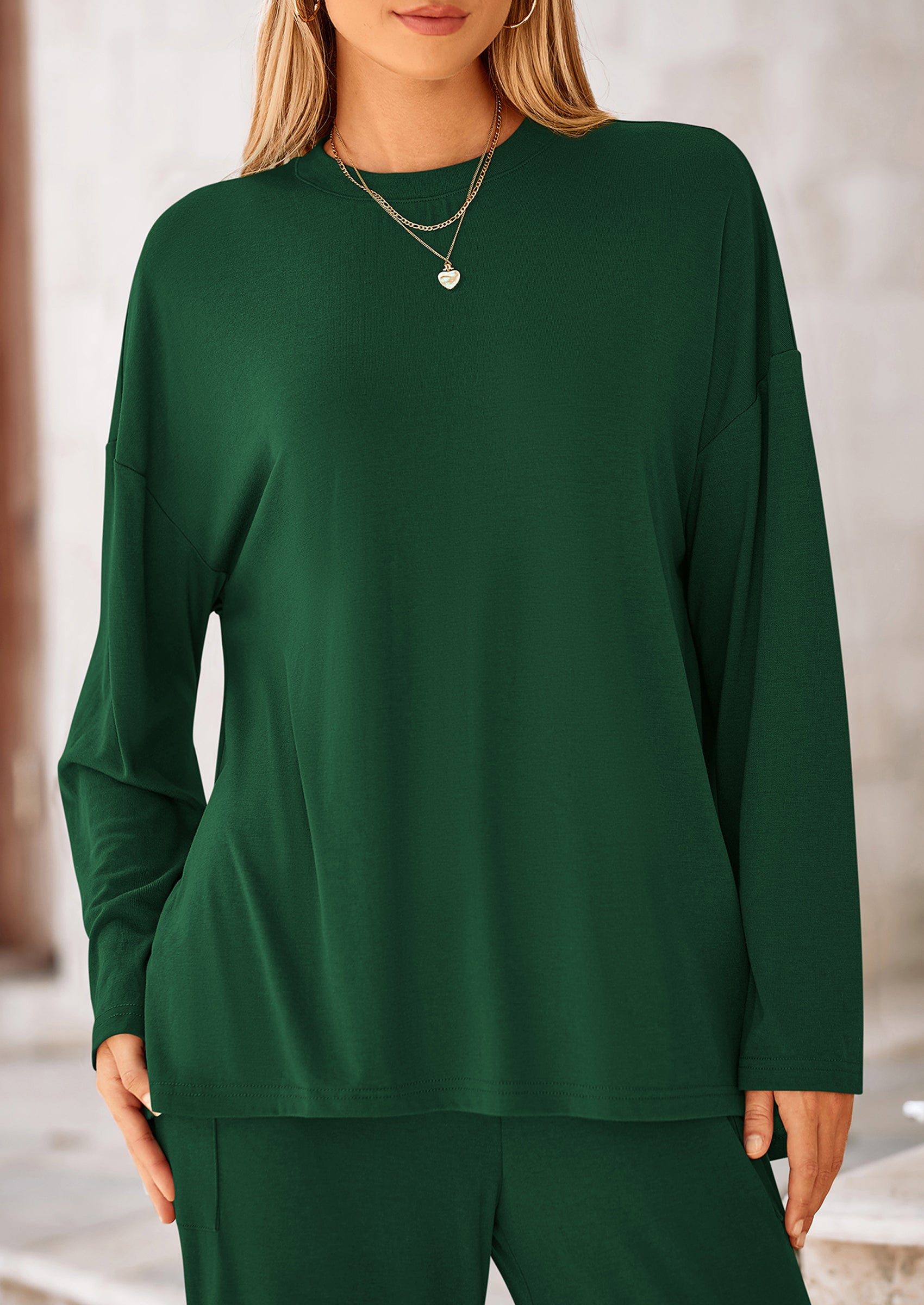 DETAILS: Casual Tops For Women Featured High Low Slit Hem Provide A Trendy And Modern Touch To The Basic Outfit. High Waisted Pants For Women With An Elastic Waistband Ensuring A Comfy And Flexible Fit. Pockets Add Functionality To The Two Piece Outfits