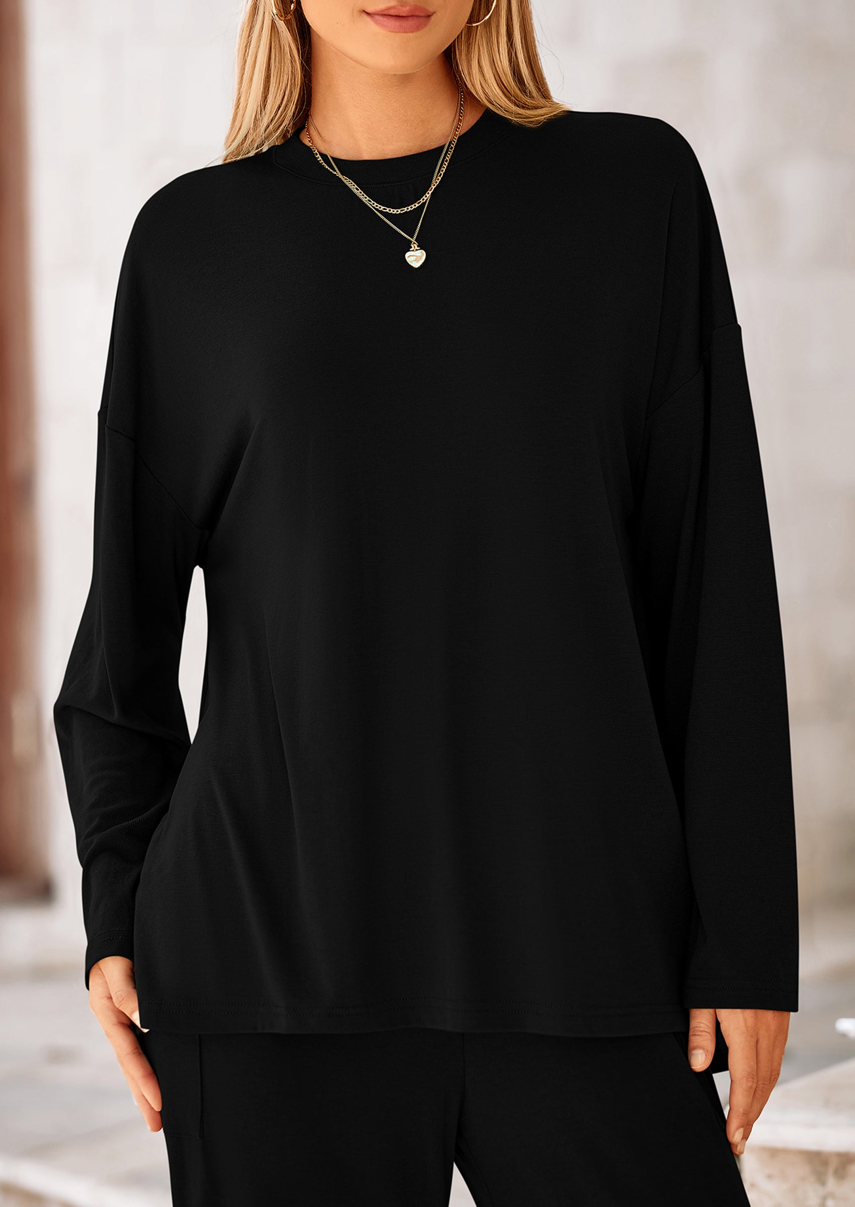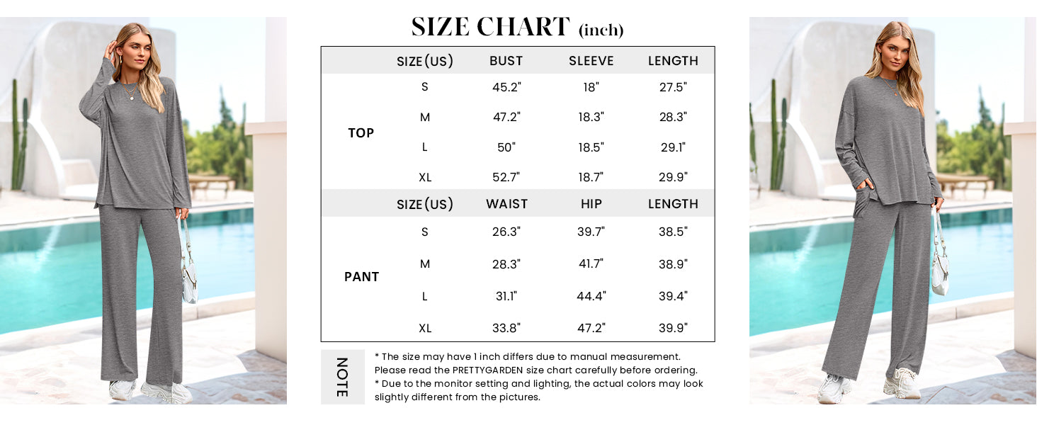 PRETTYGARDEN 2 Piece Outfits for Women Long Sleeve T Shirts Wide Leg Pants
