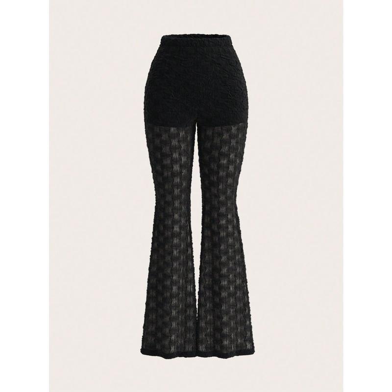 Women's Solid Lace Flare Leg Pants, Sexy Comfy  Bell Bottom Trousers for Daily Wear, Ladies Bottoms for Summer