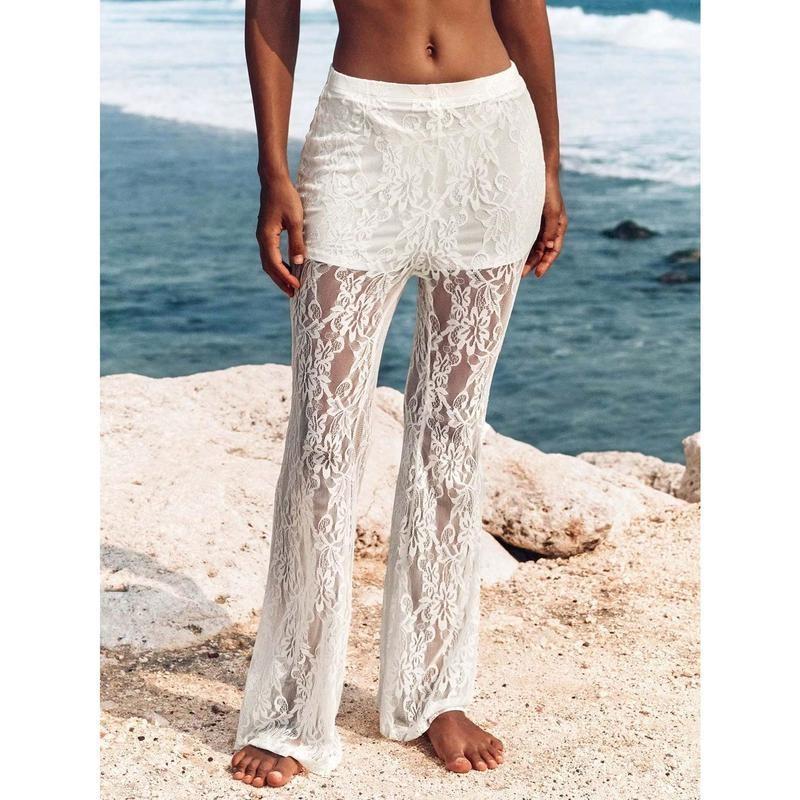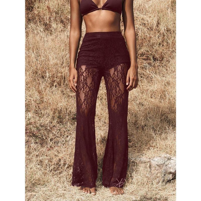 Women's High Waist Flare Lace Knit Vacation Pants
