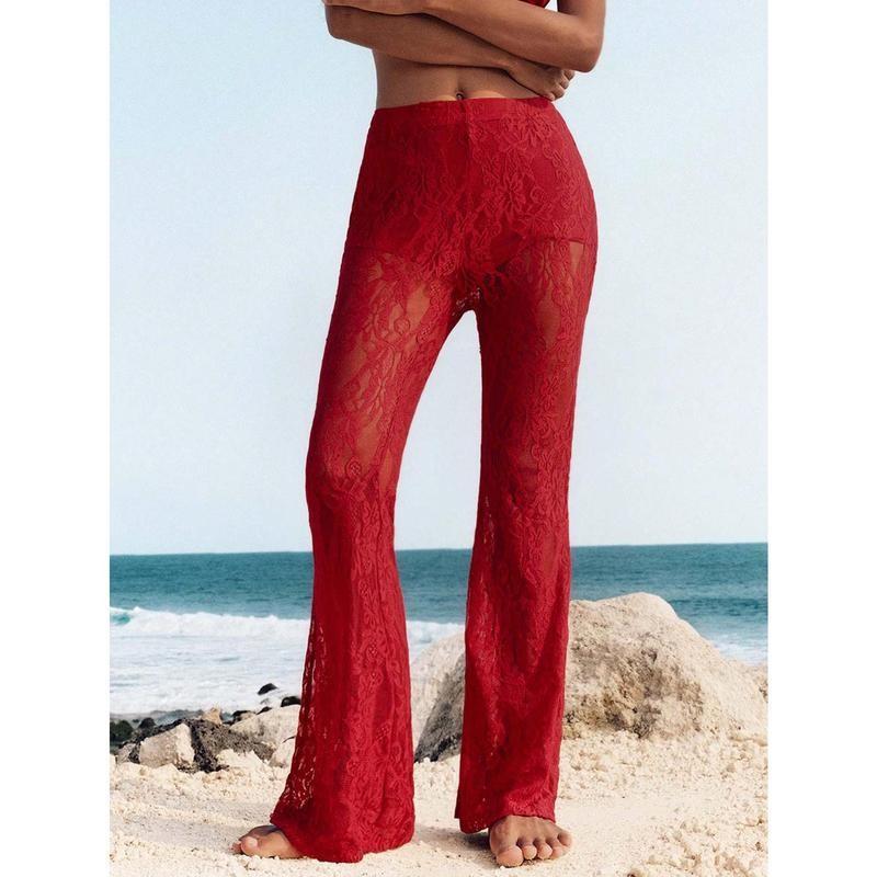 Women's High Waist Flare Lace Knit Vacation Pants