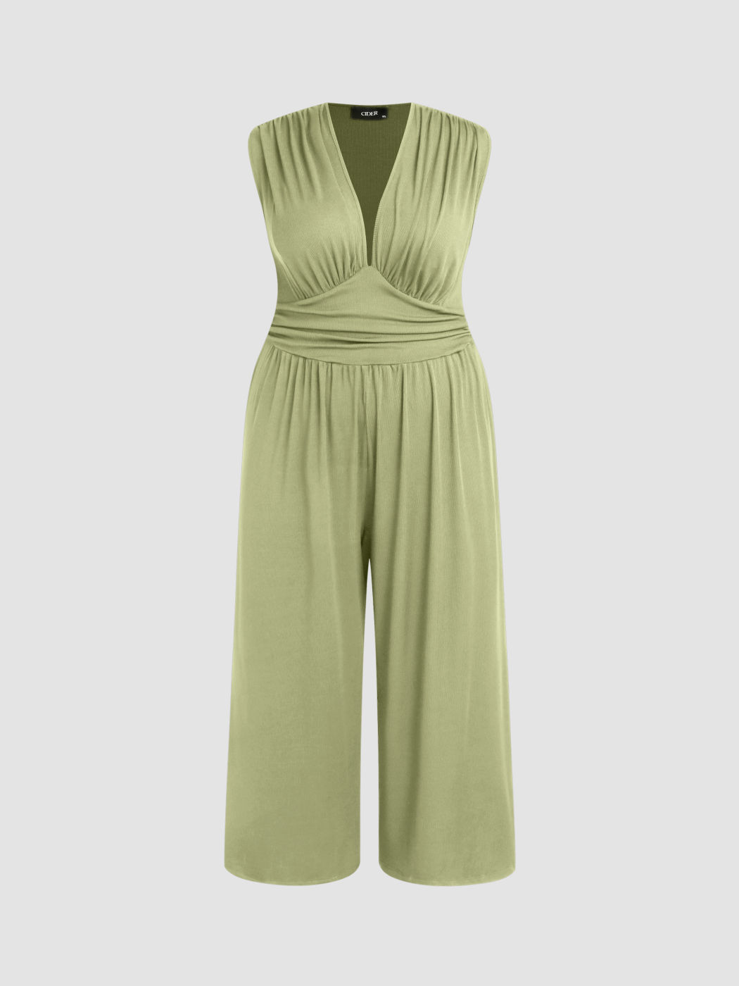 • Women's new jumpsuit with pockets Plain Ruched V Neck Ribbed Tank Jumpsuit, Summer Outfits 2026, Elegant Sleeveless Wide Leg Jumpsuit for Women for Vacation Holiday Party, Ladies Summer Clothes