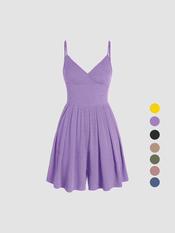 • Women's Plain Backless Wrap Cami Romper, Casual Adjustable Spaghetti Strap Wide Leg Romper, Summer Outfits 2025, Ladies Clothes for Daily Wear