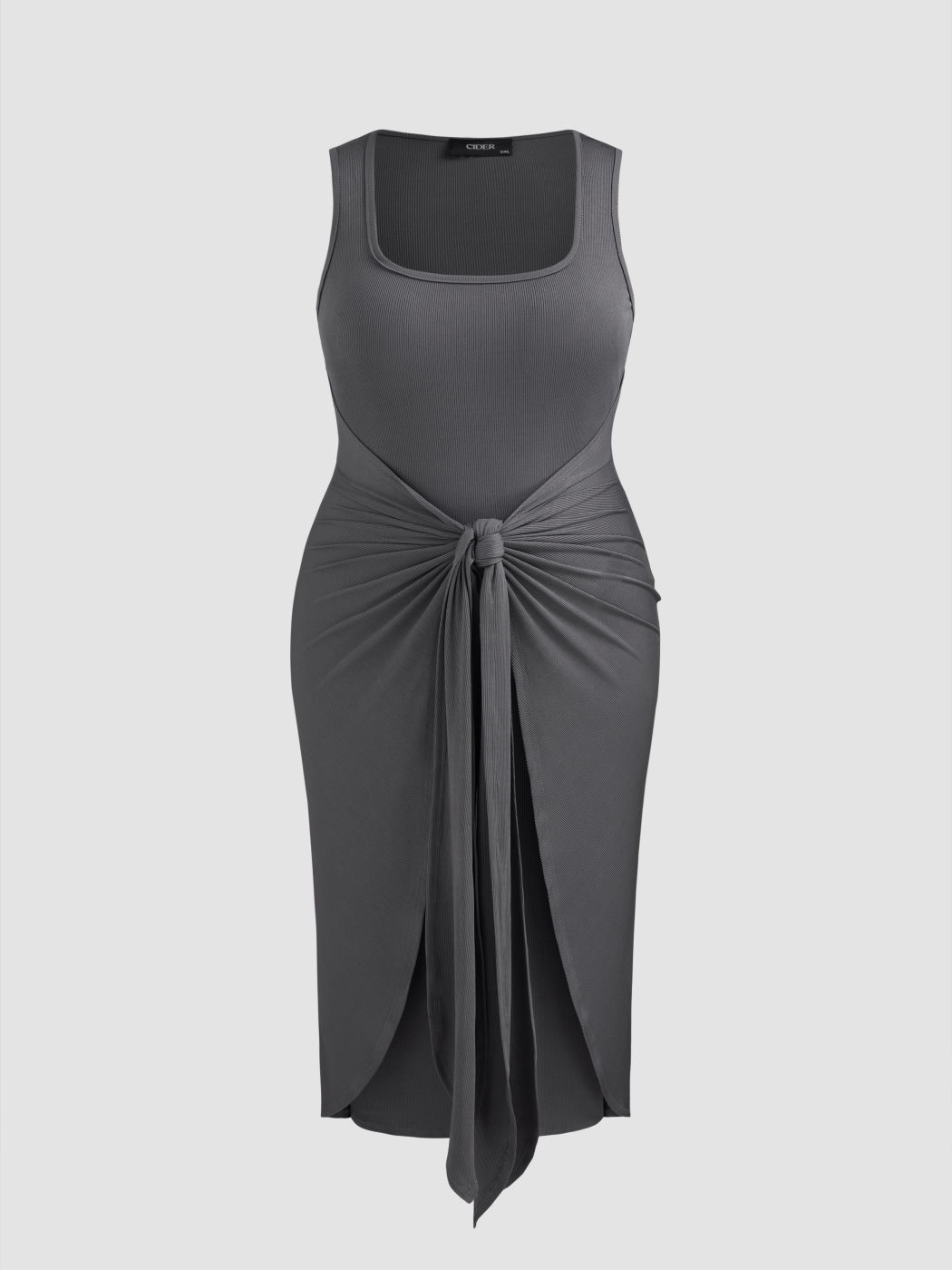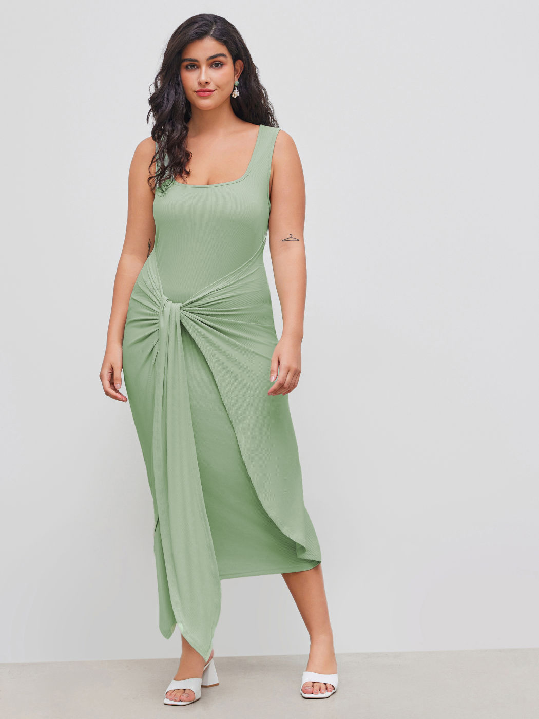 Square Neck Solid Twist Knotted Maxi Dress Curve & Plus Dress
