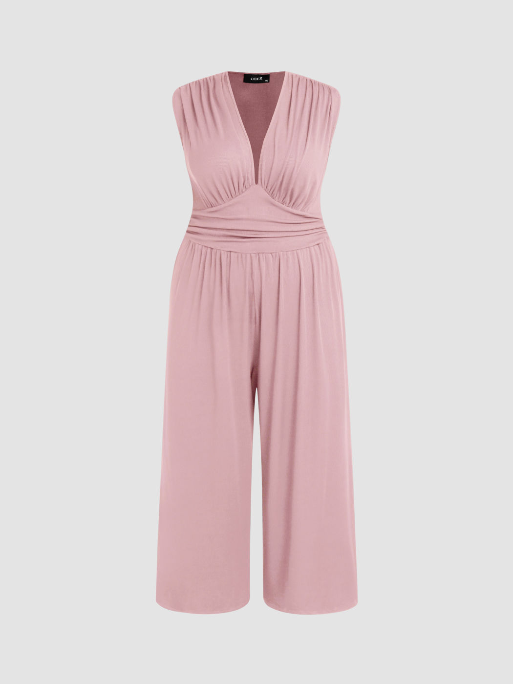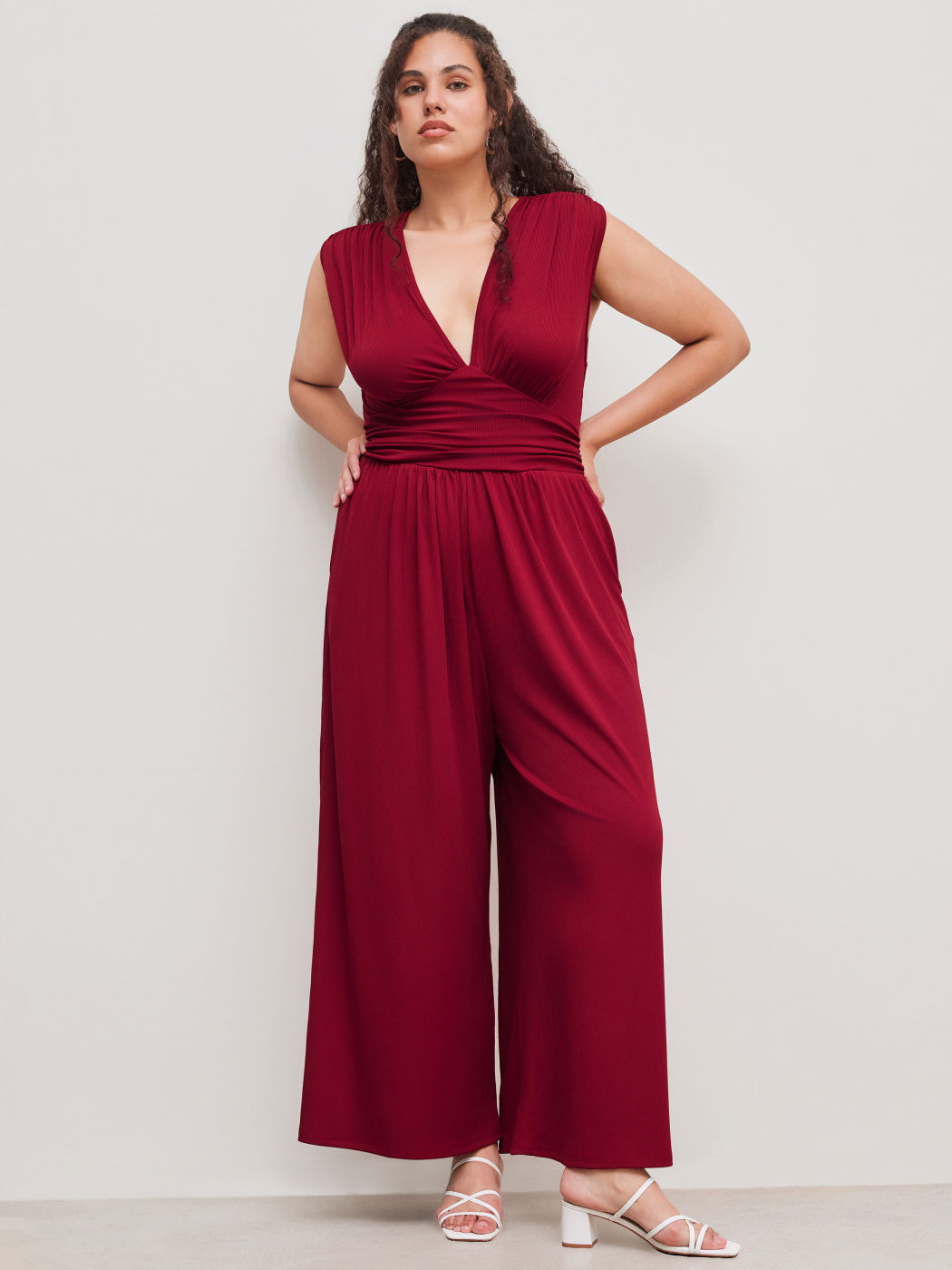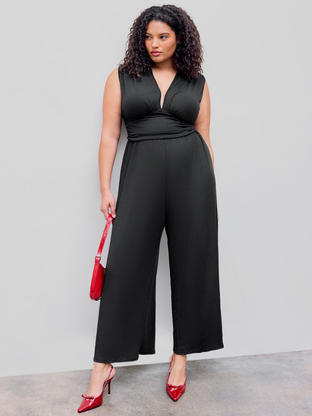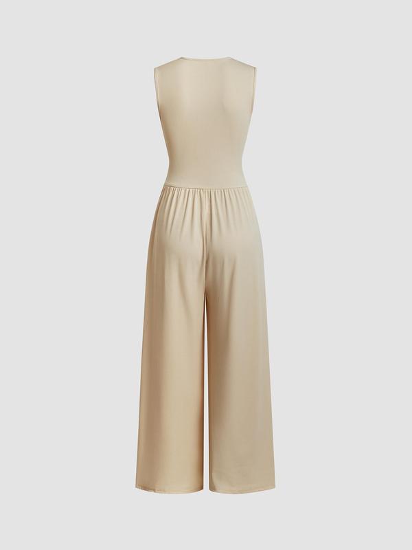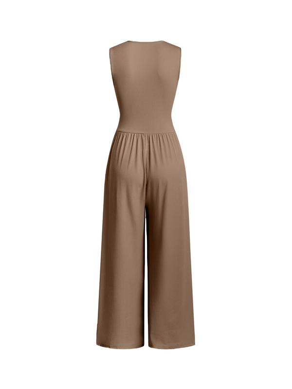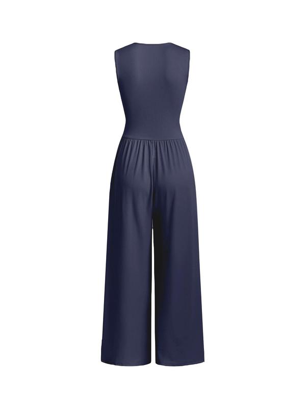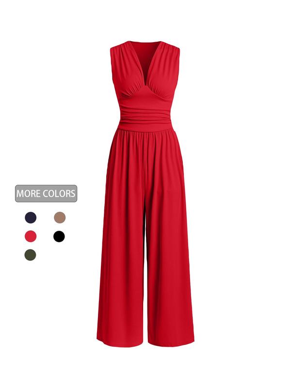 2026 Women's new jumpsuit with pockets Plain Ruched V Neck Ribbed Tank Jumpsuit, Summer Outfits 2026, Elegant Sleeveless Wide Leg Jumpsuit for Women for Vacation Holiday Party, Ladies Summer Clothes