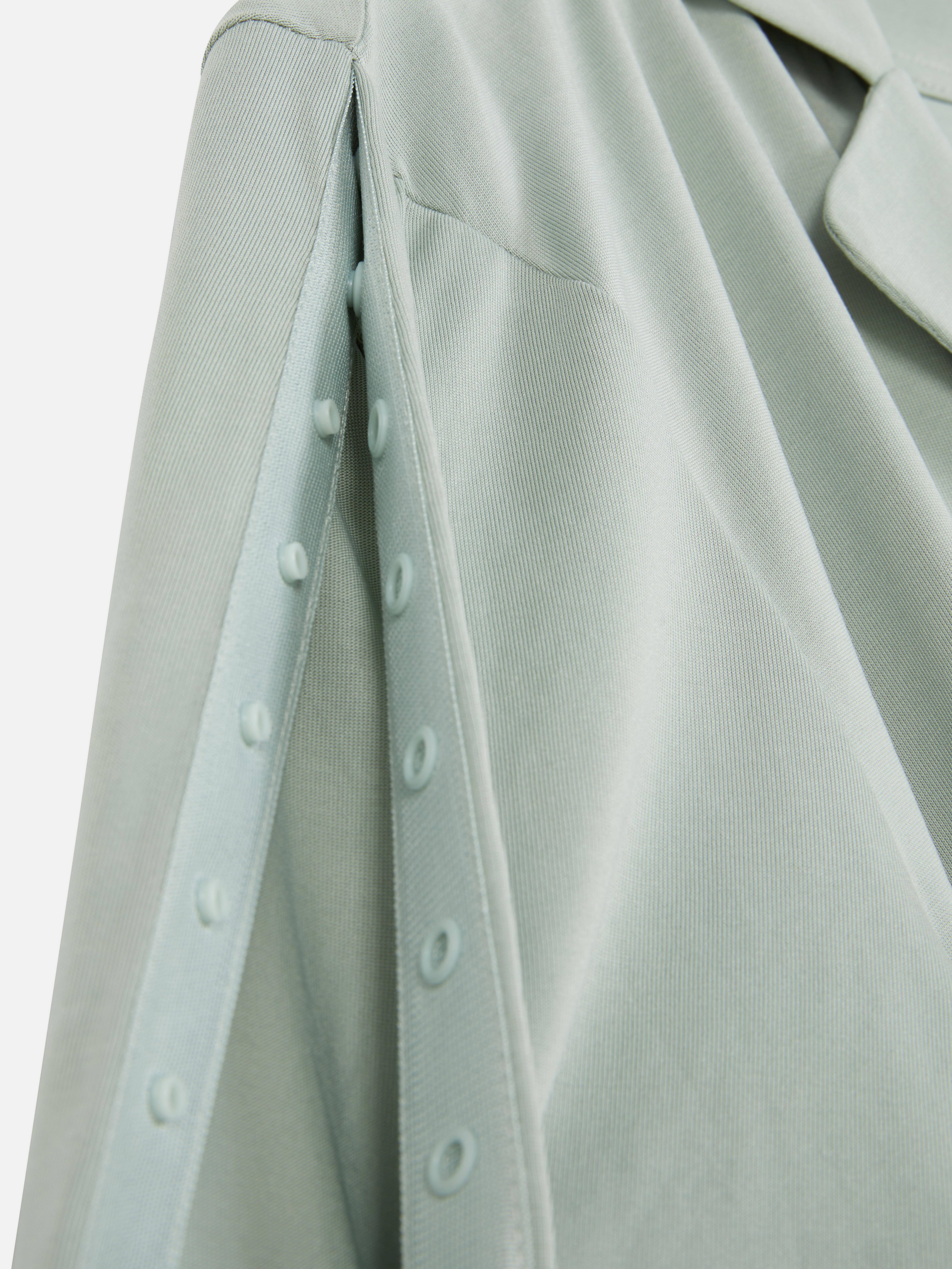 This green pyjama shirt makes getting ready for bed easier with thoughtful adaptive features. The classic lapel collar and relaxed fit create a comfortable feel, while clever popper fastenings along the front and sleeves allow for quick and independent dressing. The hidden poppers blend seamlessly into the design, maintaining a smart appearance while offering practical functionality. Style with the matching adaptive pyjama bottoms and add a coordinating dressing robe for those chilly evenings.