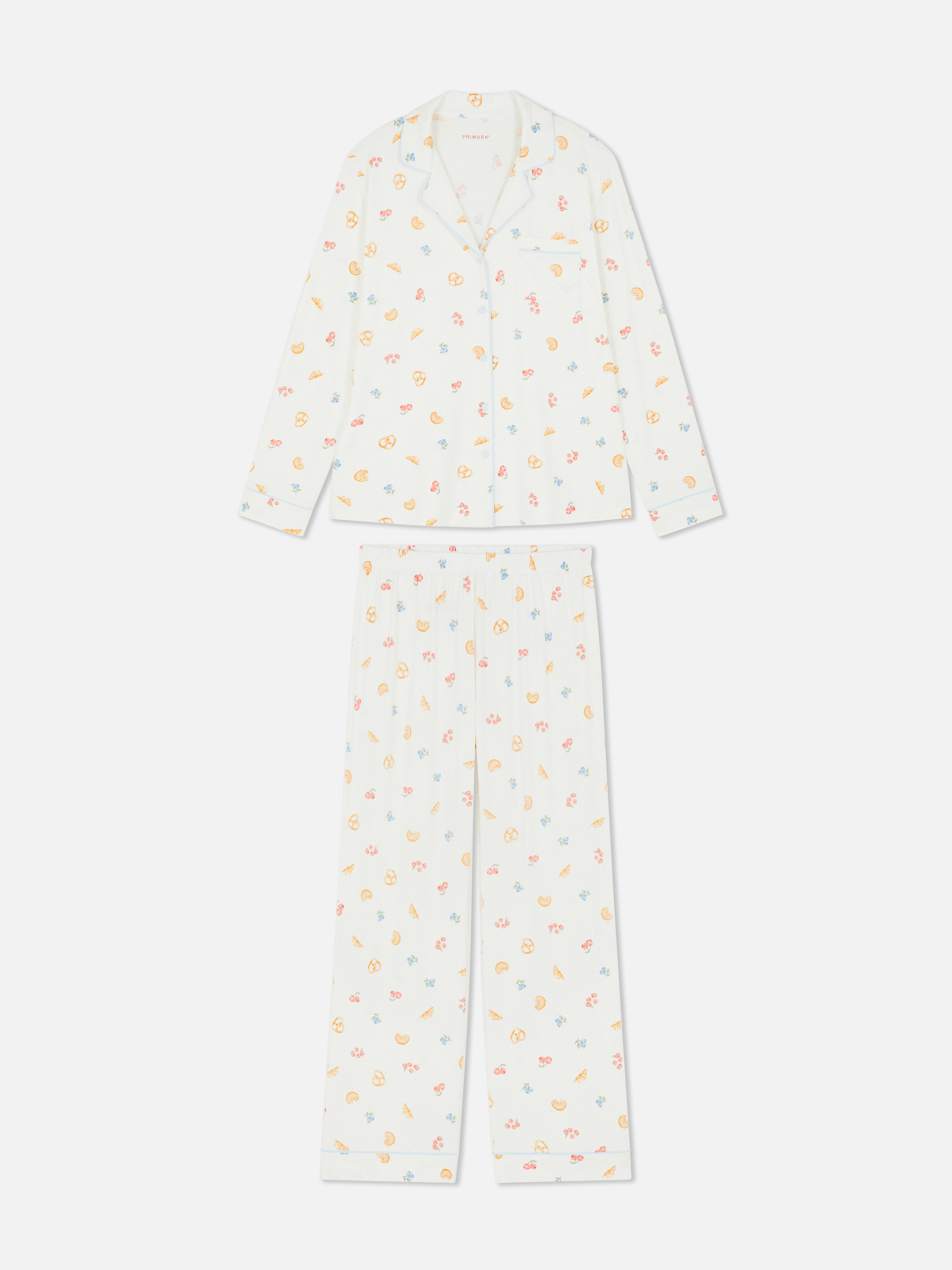 Settle in for a cosy night with this printed boyfriend pyjama set. The long sleeve button up shirt comes with a collar and a single chest pocket for a classic touch, while the matching full-length trousers keep things comfy with their relaxed fit. This set is perfect for unwinding after a long day or enjoying a slow weekend morning. Finished with an all-over print, it brings a playful twist to your nightwear drawer — whatever your style.