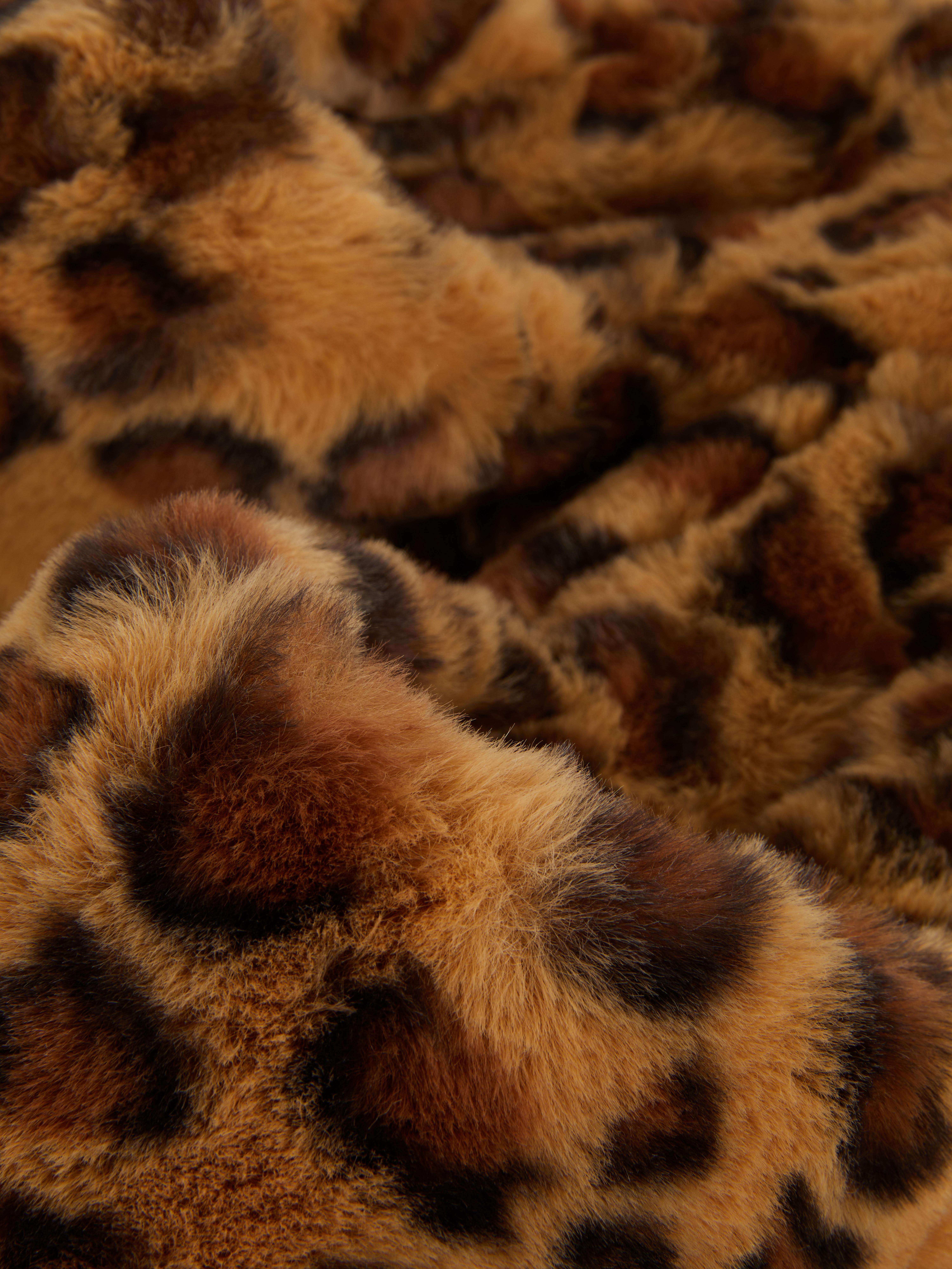 Step into cosy comfort with these fluffy mule slippers, featuring a bold leopard design. The backless style makes them easy to slip on, while the soft, plush texture keeps your feet snug and warm. Perfect for lounging at home in style, these slippers add a touch of wild charm to your downtime.