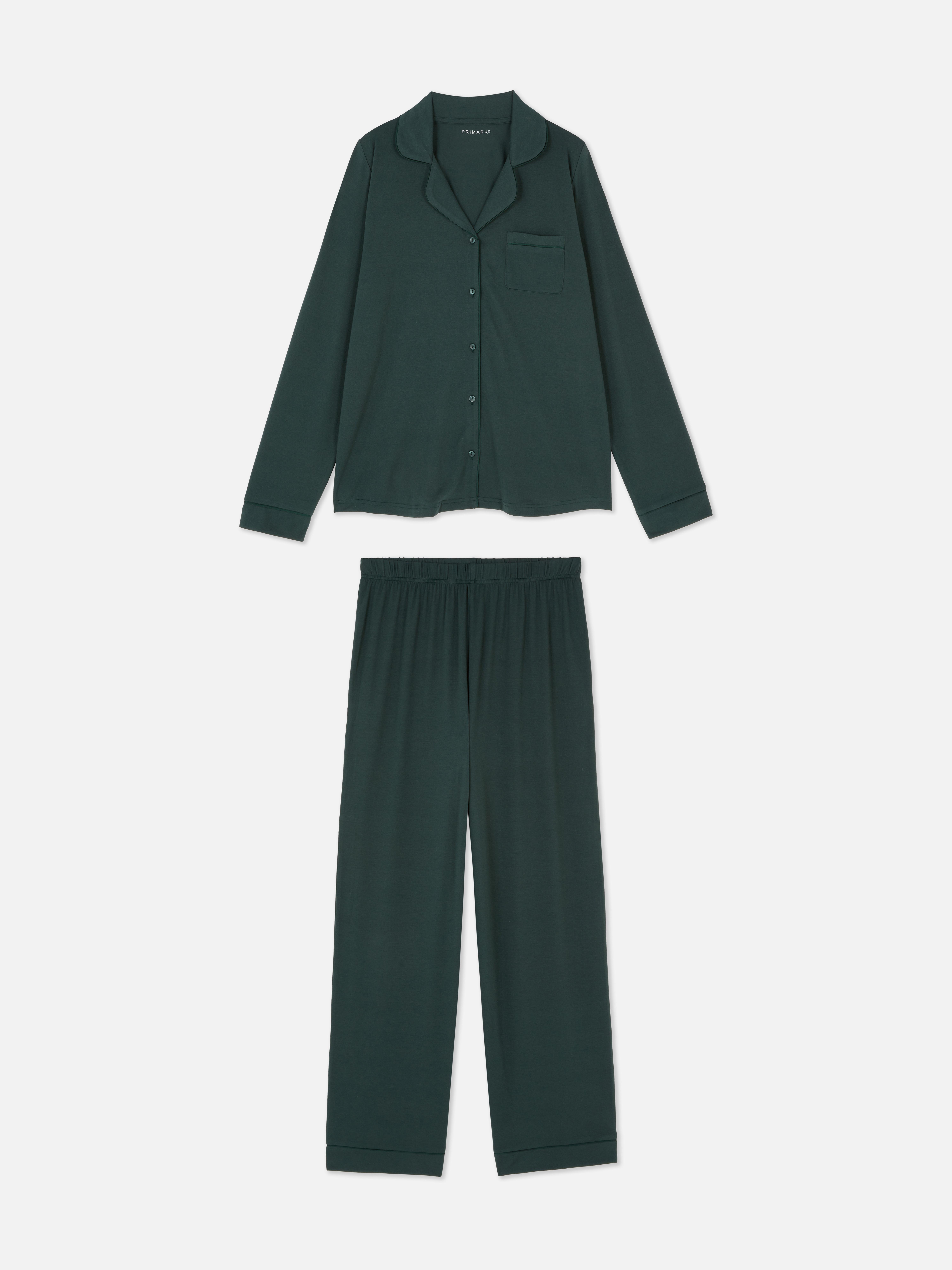 or nightwear that’s as stylish as your daytime wardrobe, you can count on these boyfriend pyjamas! Made from a soft jersey, the long sleeve top features a revere collar, button-up front and chest pocket for timeless charm. The coordinating trousers enjoy an elasticated waist that falls to a relaxed wide leg silhouette to offer a comfy wearing experience. Finished with classic contrast piping, you can layer these PJs with your fluffiest dressing gown for those moments you want to be extra toasty!