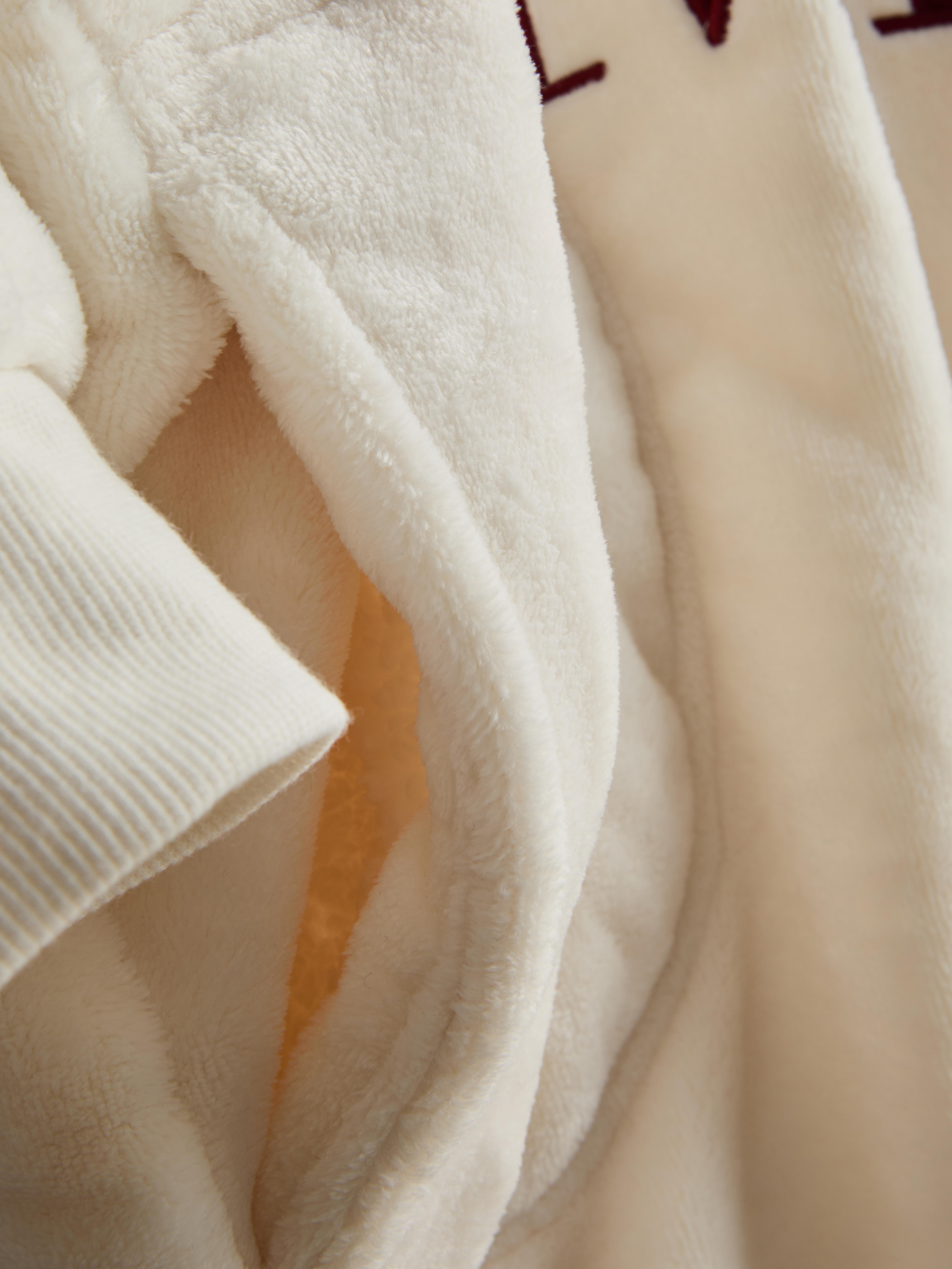 Wrap up in warmth with this Miffy Graphic Snuddie. Made from super soft fleece, it’s designed in an oversized fit with long sleeves and a roomy hood for ultimate comfort. The front shows a playful Miffy graphic with bold lettering, while two large kangaroo pockets keep hands toasty or essentials close. Finished in a light cream shade, it’s the perfect pick for those chilly mornings or relaxed evenings in.
