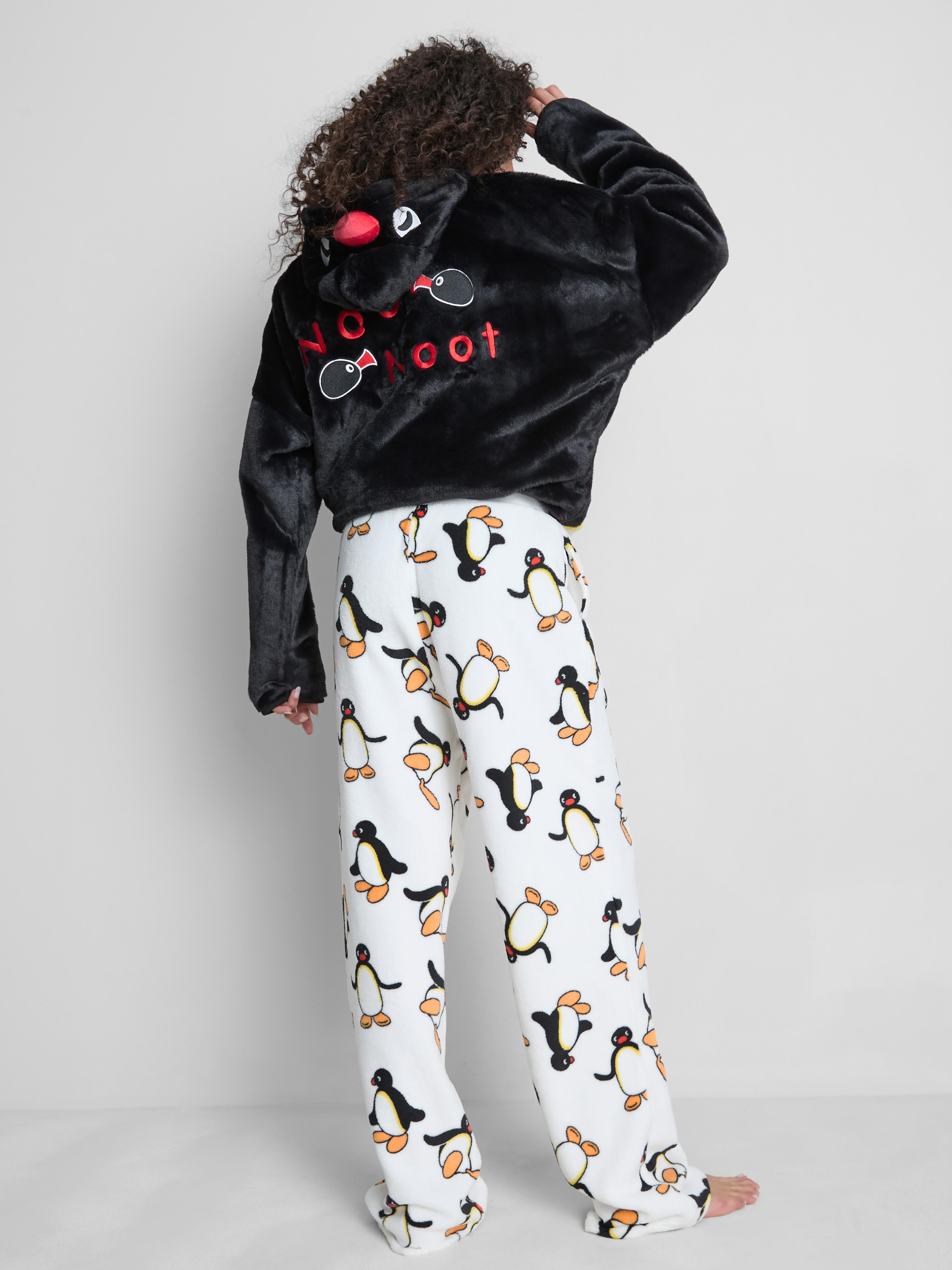 Get snug with everyone’s favourite penguin in these Pingu plush pyjama bottoms. Made from a soft fleece, they’re perfect for keeping warm on chilly nights or relaxed mornings. The base is covered in a playful all-over Pingu print, adding a nostalgic touch to your downtime. Designed with a relaxed, straight leg fit and an elasticated waistband, they’re as comfortable as they are fun. Whether you’re lounging or watching cartoons, these pyjama bottoms bring comfort and character to your nightwear.