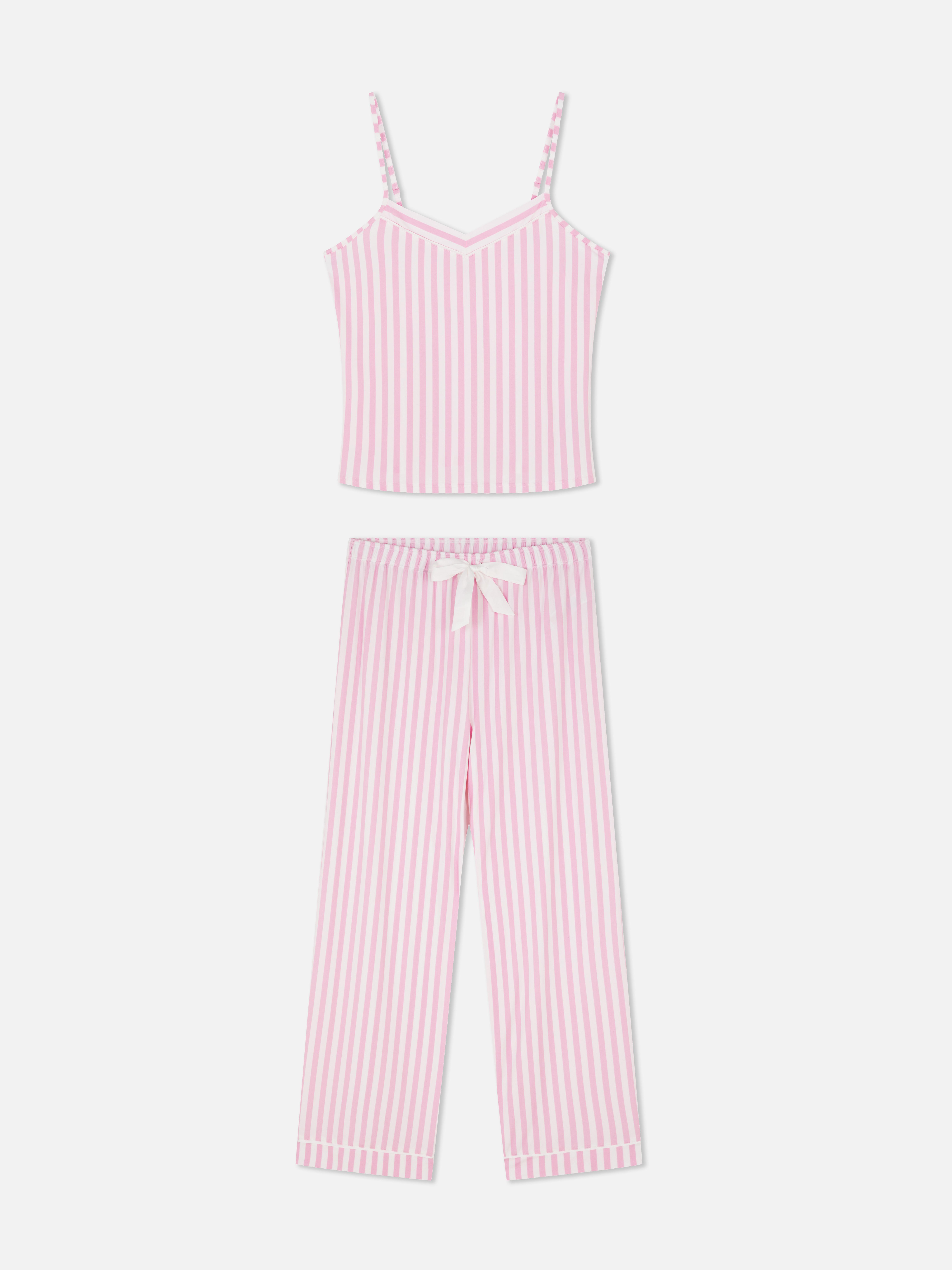 This pajama set comes with straight-leg bottoms and a cami top, both in a matching print