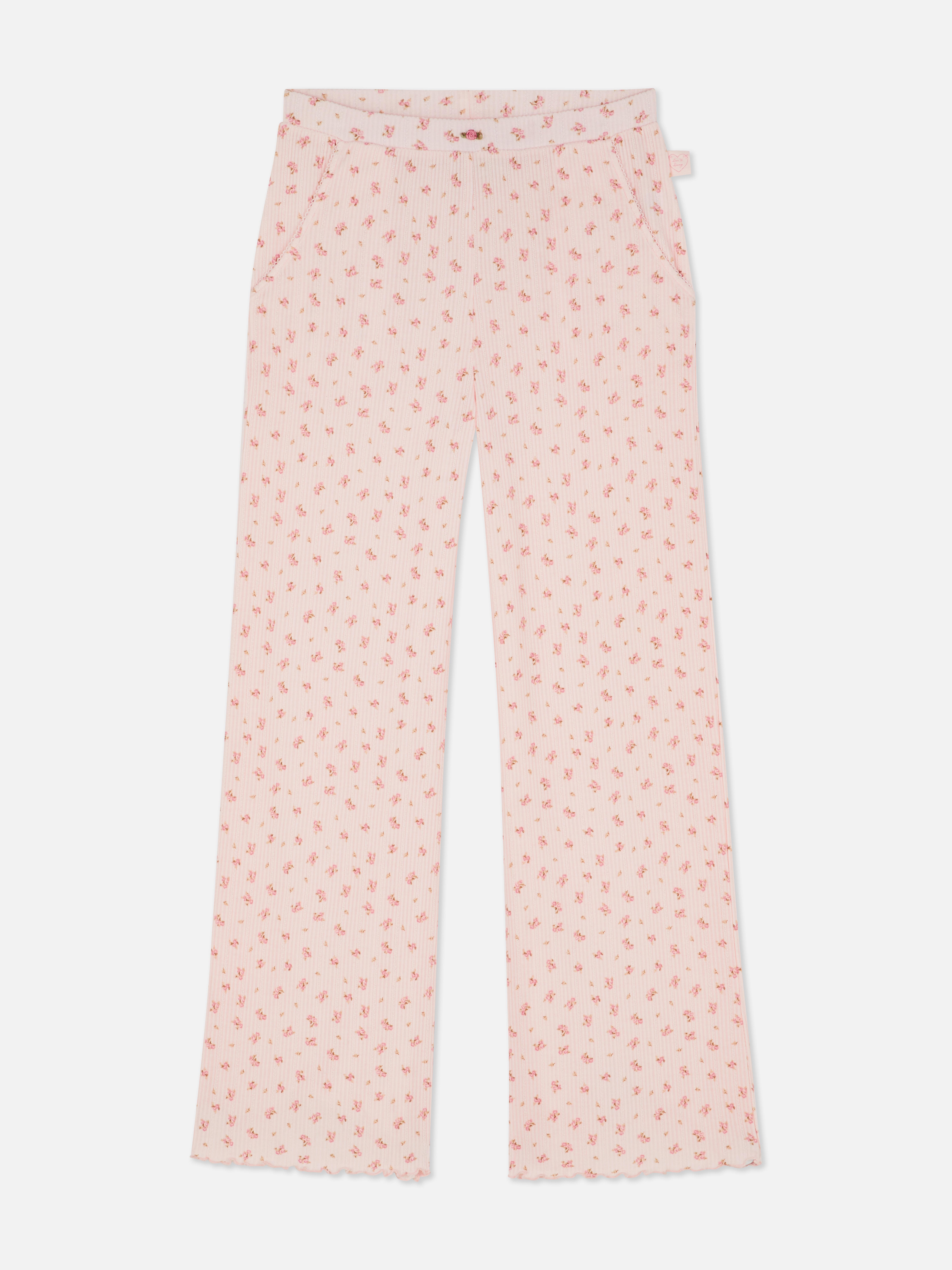 Embrace all kinds of sweet dreams in these pointelle pyjama bottoms! The perfect mix of cute and comfy, they’ll be a go-to in your nightwear rotation. The delicate floral print, lettuce trim leg hems and adorable rose detail on the waistband are giving all the cottagecore vibes. Fitted with slip pockets for even more functionality, team them with the matching tops for laid-back looks you'll love to hit the hay in, or style them with a white tee and some fluffy socks for the ultimate chill day outfit.