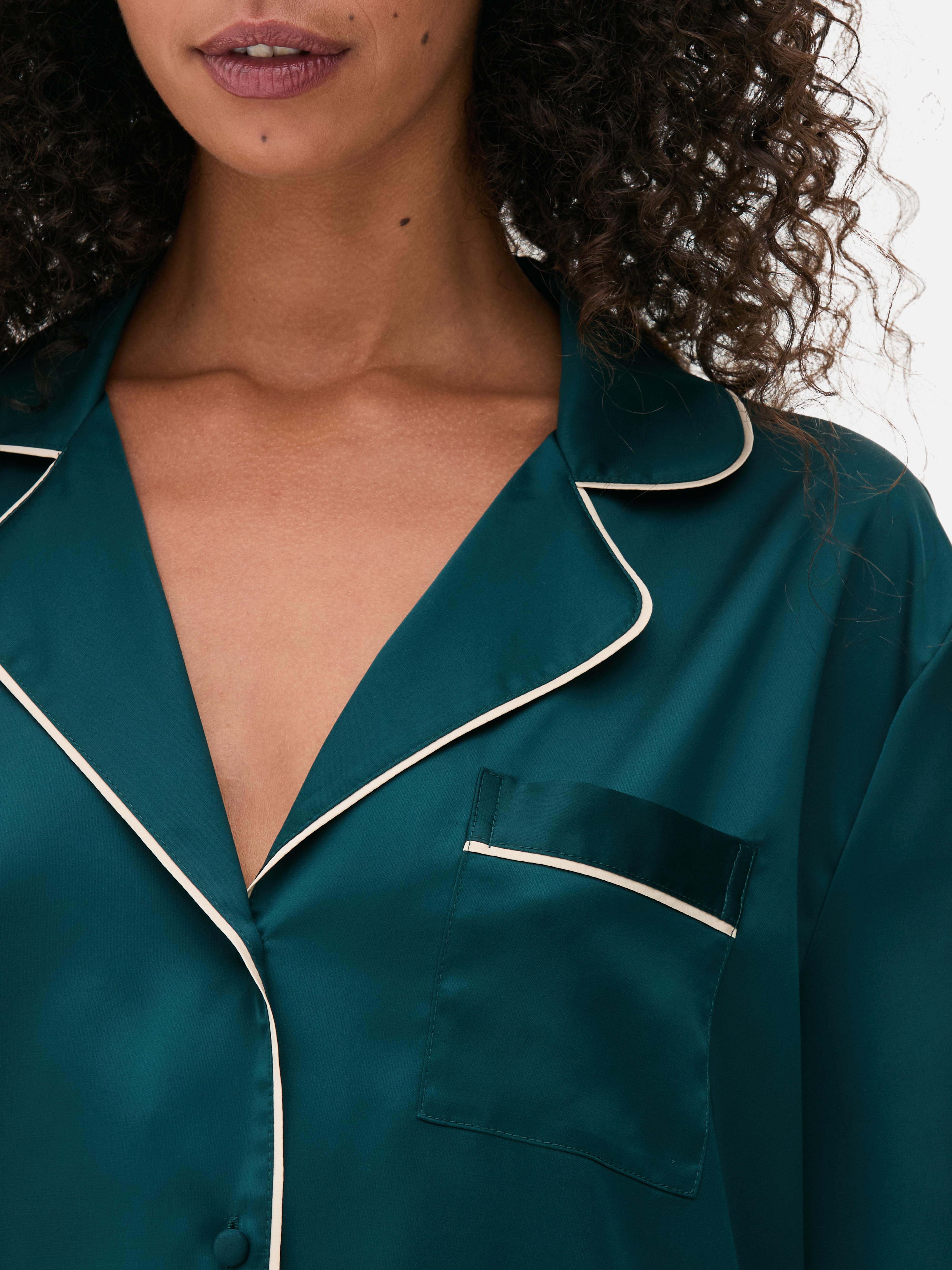 Classic boyfriend pajamas in smooth satin with a patch pocket and contrast trim