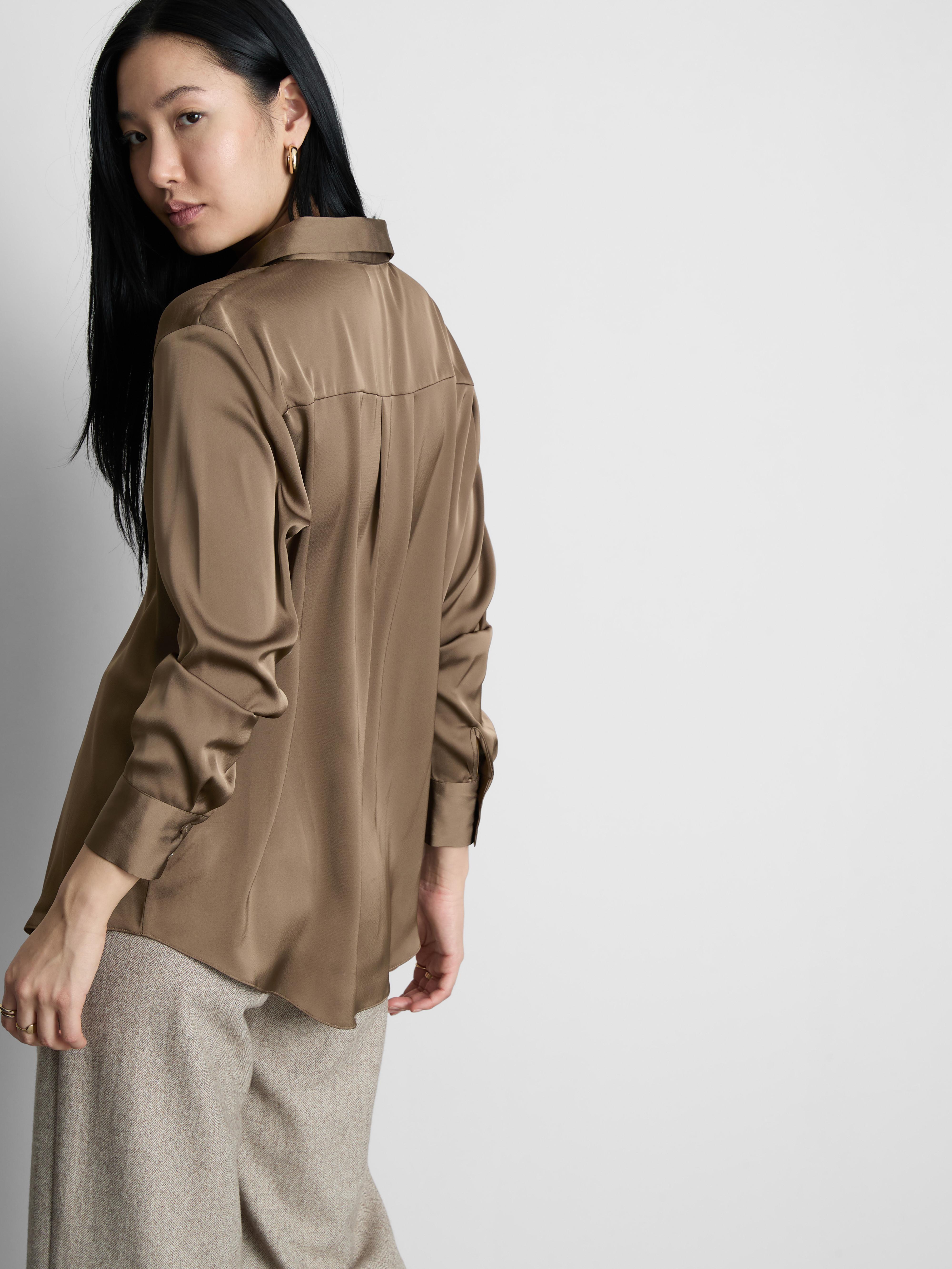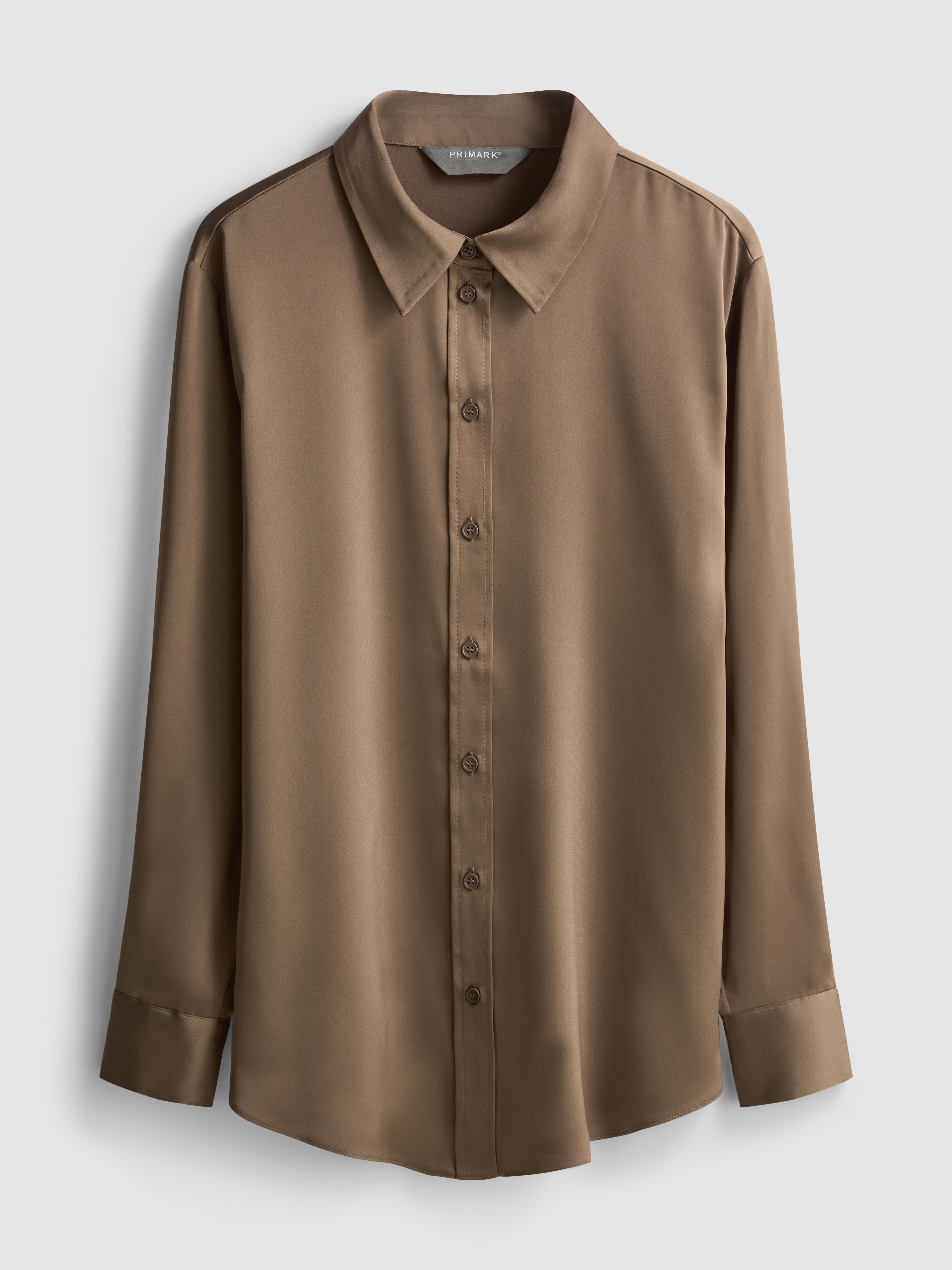 Satin shirt with a classic button-up front and a sleek, oversized fit