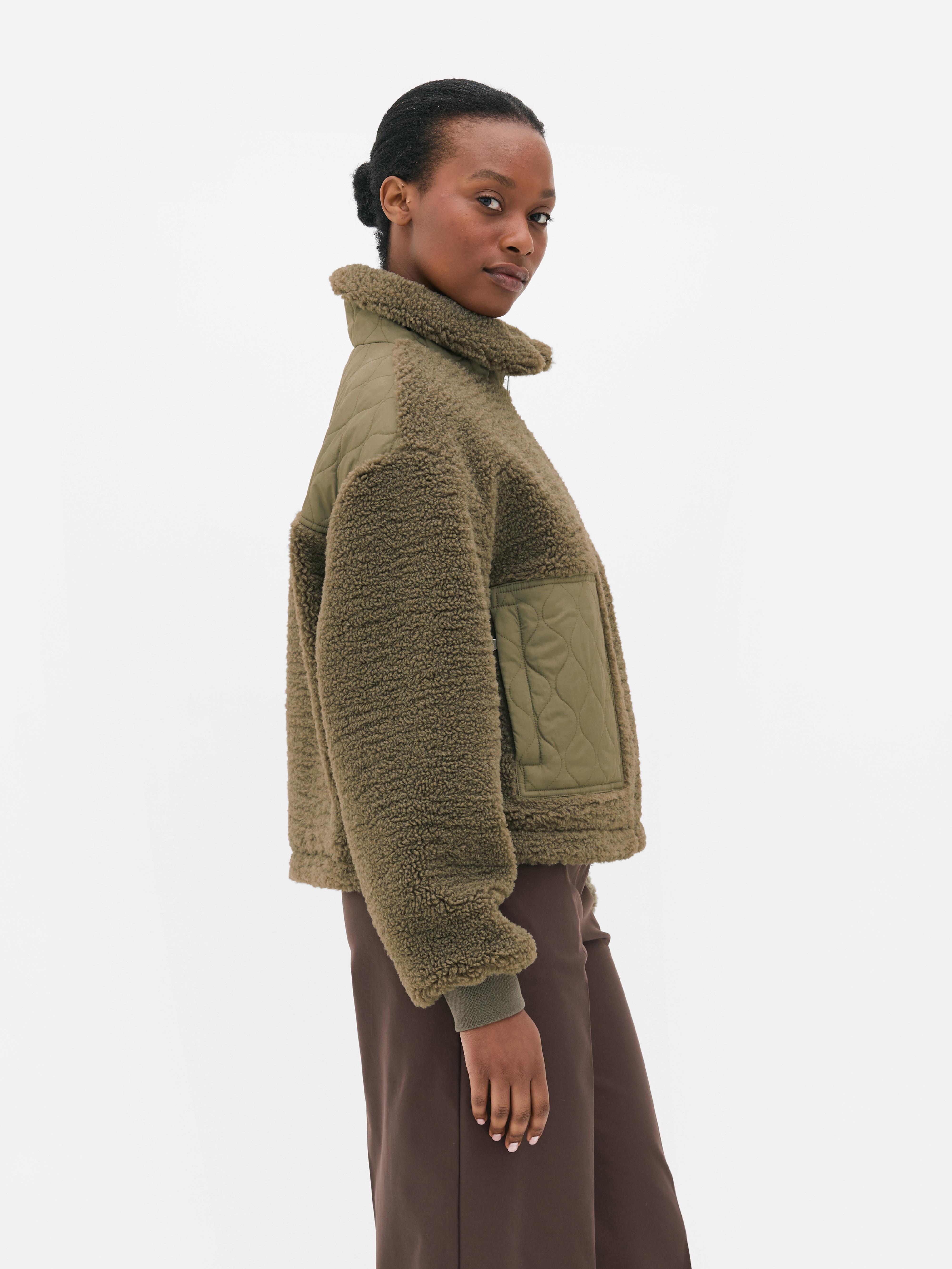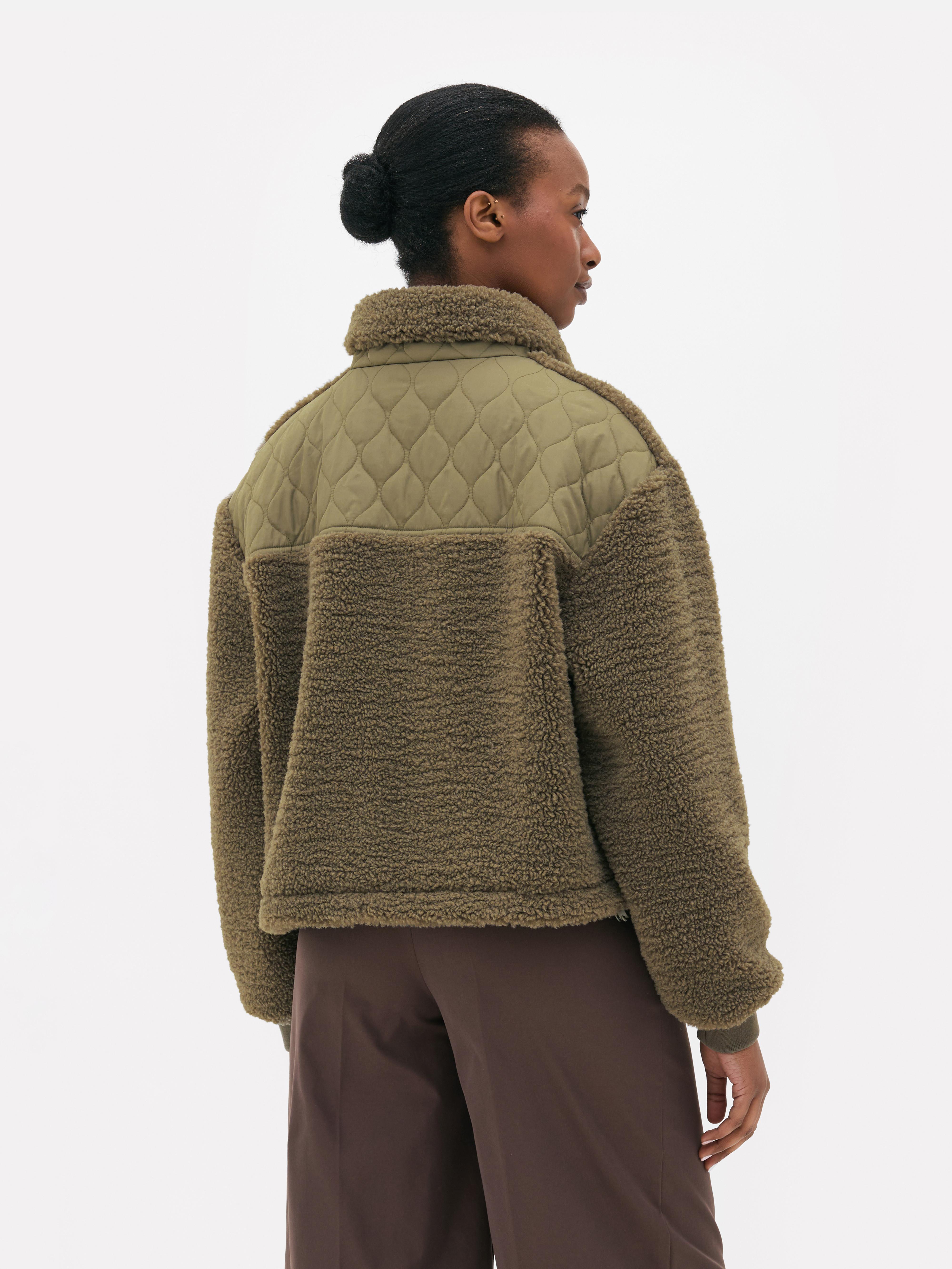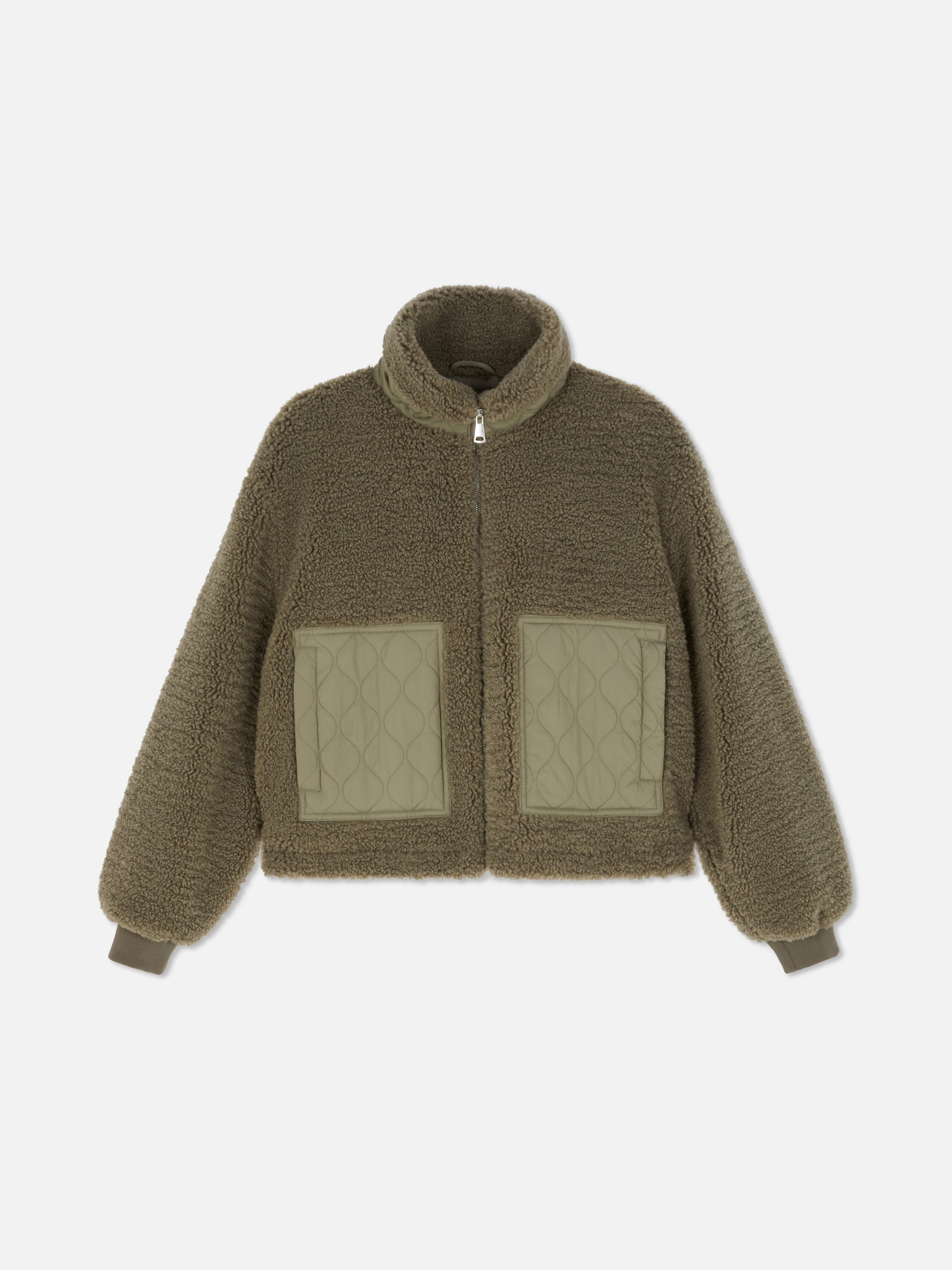 Made with warmth and style in mind, this jacket comes in a fleece texture with a shawl collar and contrasting pockets