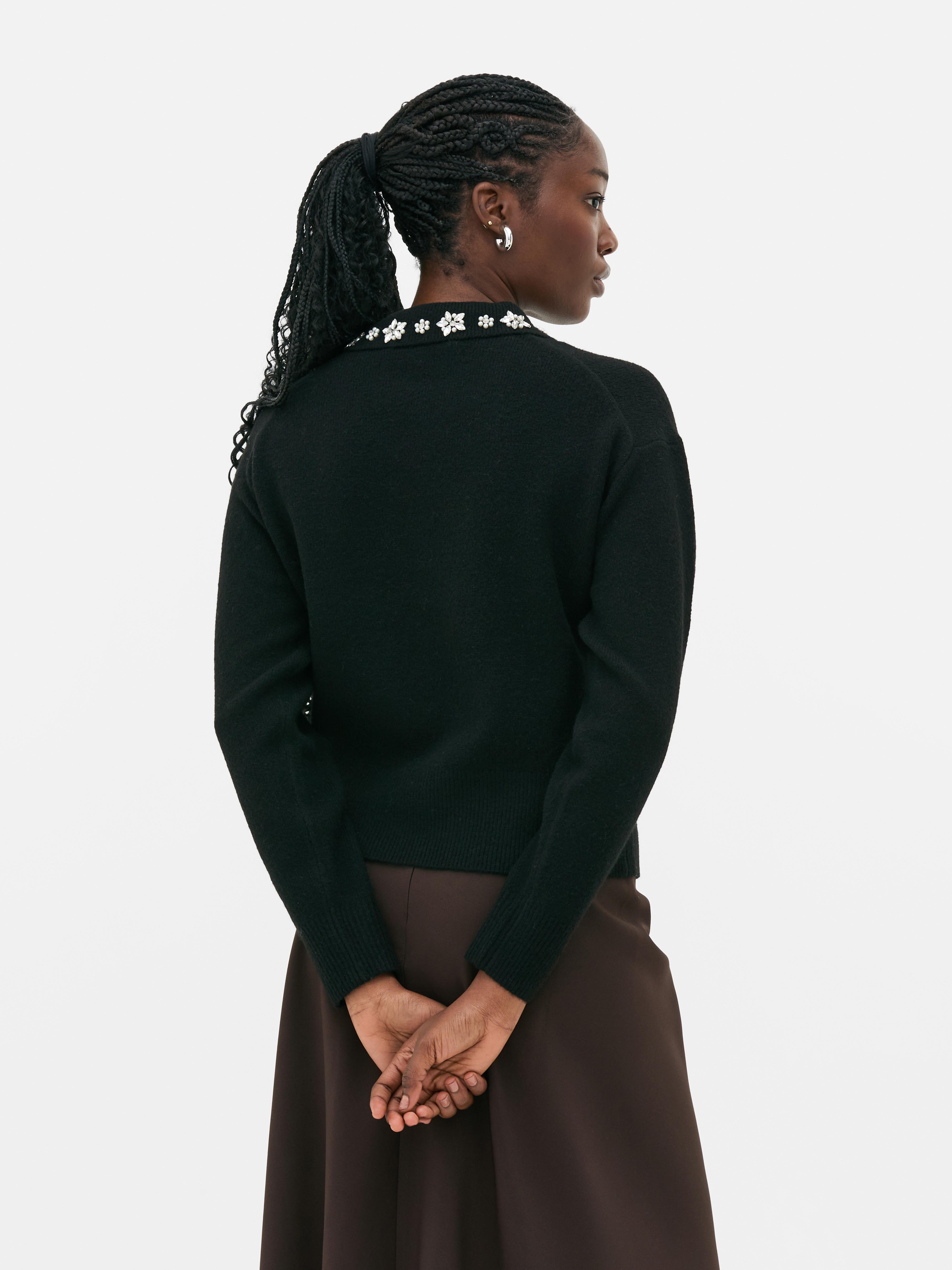 Embroidered Jewel Collar Sweater