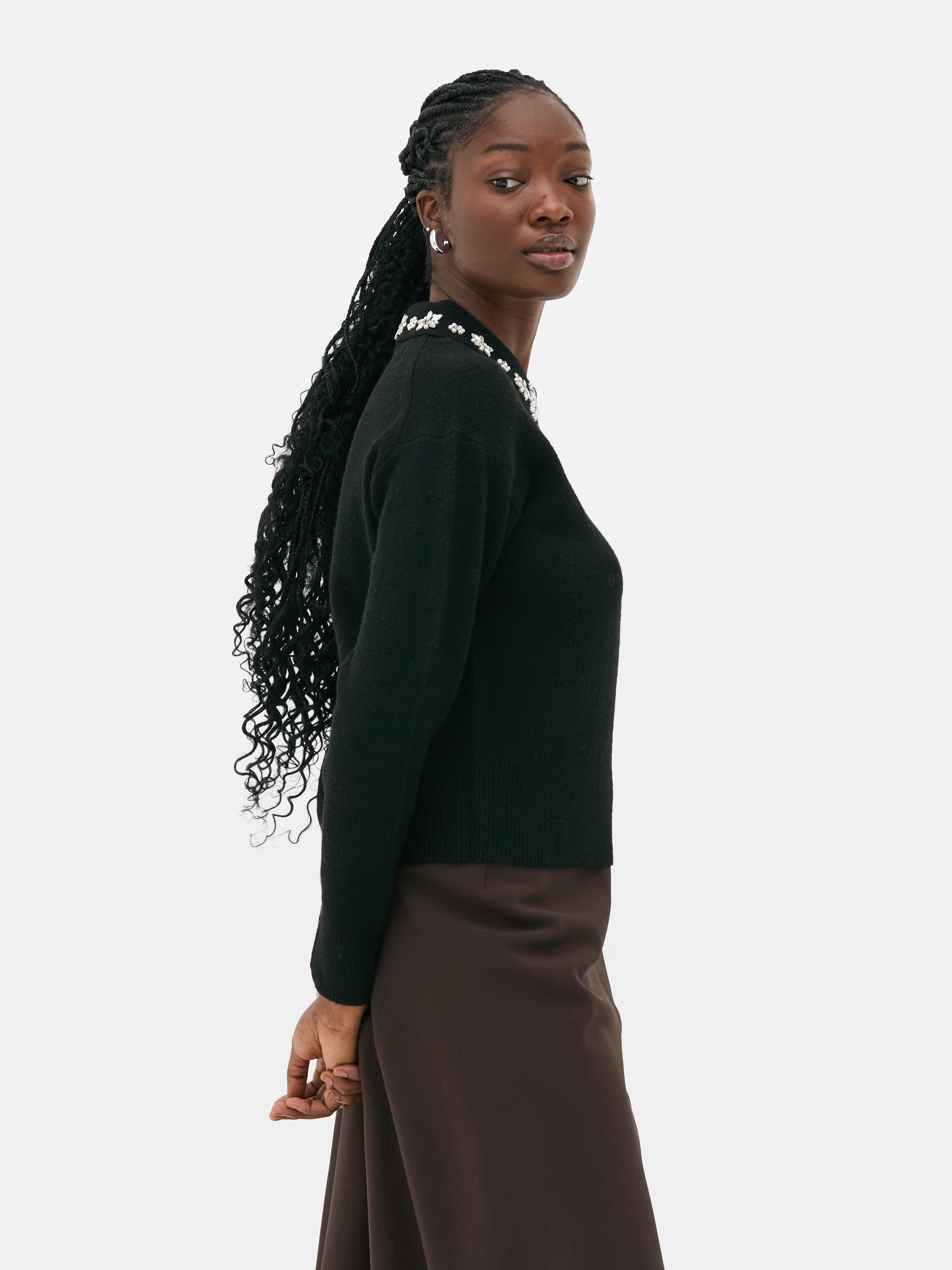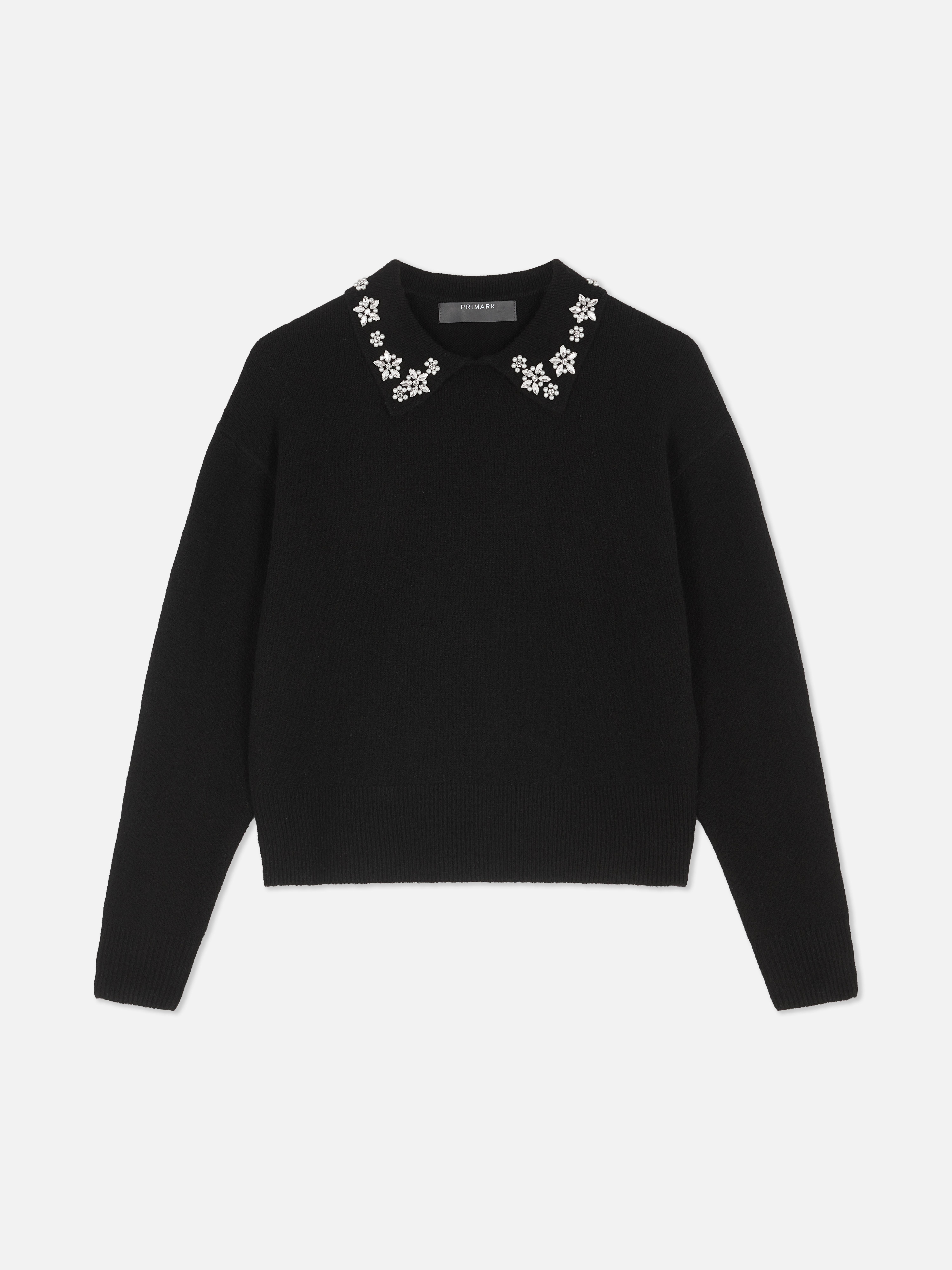 Upgrade your knitwear with this sweater - with long sleeves and a regular fit, it's finished with a collar embroidered with jewels!