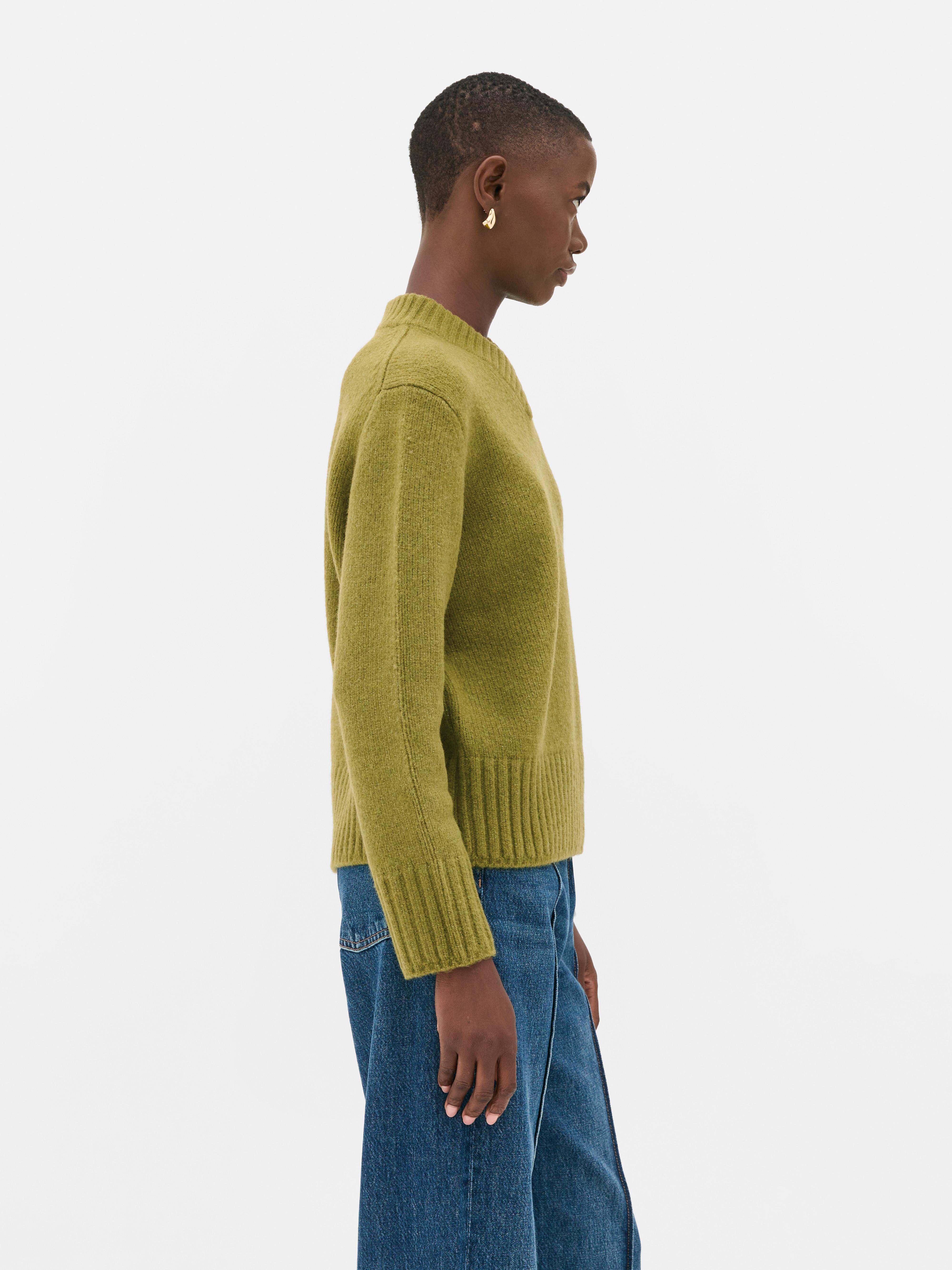Your everyday jumper, sorted. This essential V-neck knit comes in a soft, mossy green shade that goes with just about everything. It has a relaxed, easy fit with long sleeves, a V-neckline and ribbed trims at the cuffs and hem to keep things cosy. The fuzzy knit texture adds a bit of warmth and comfort, making it a great throw on for cooler days. Style it solo or layer it over shirts, tees or dresses – it’s a true wardrobe all-rounder.