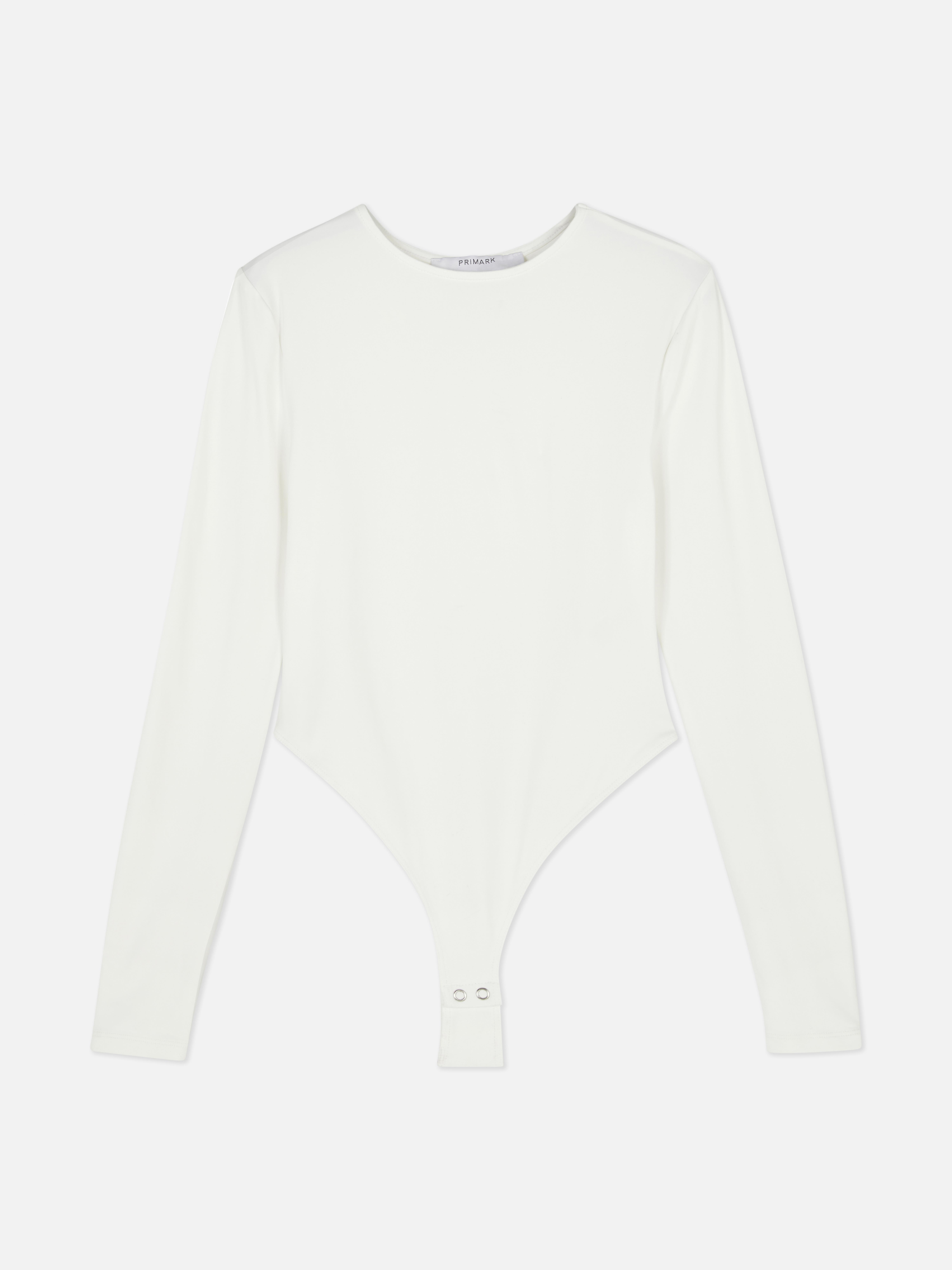 Keep things simple and sleek with this essential white long sleeve bodysuit. Made from a smooth, stretchy fabric, it hugs the body for a comfy, figure-skimming fit. Designed with a classic crew neckline and full-length sleeves, it’s an easy piece to layer under jeans, skirts or trousers. The snap button closure at the bottom keeps things secure, so you’re good to go from morning to night. A go-to basic you'll wear on repeat, whatever the season.