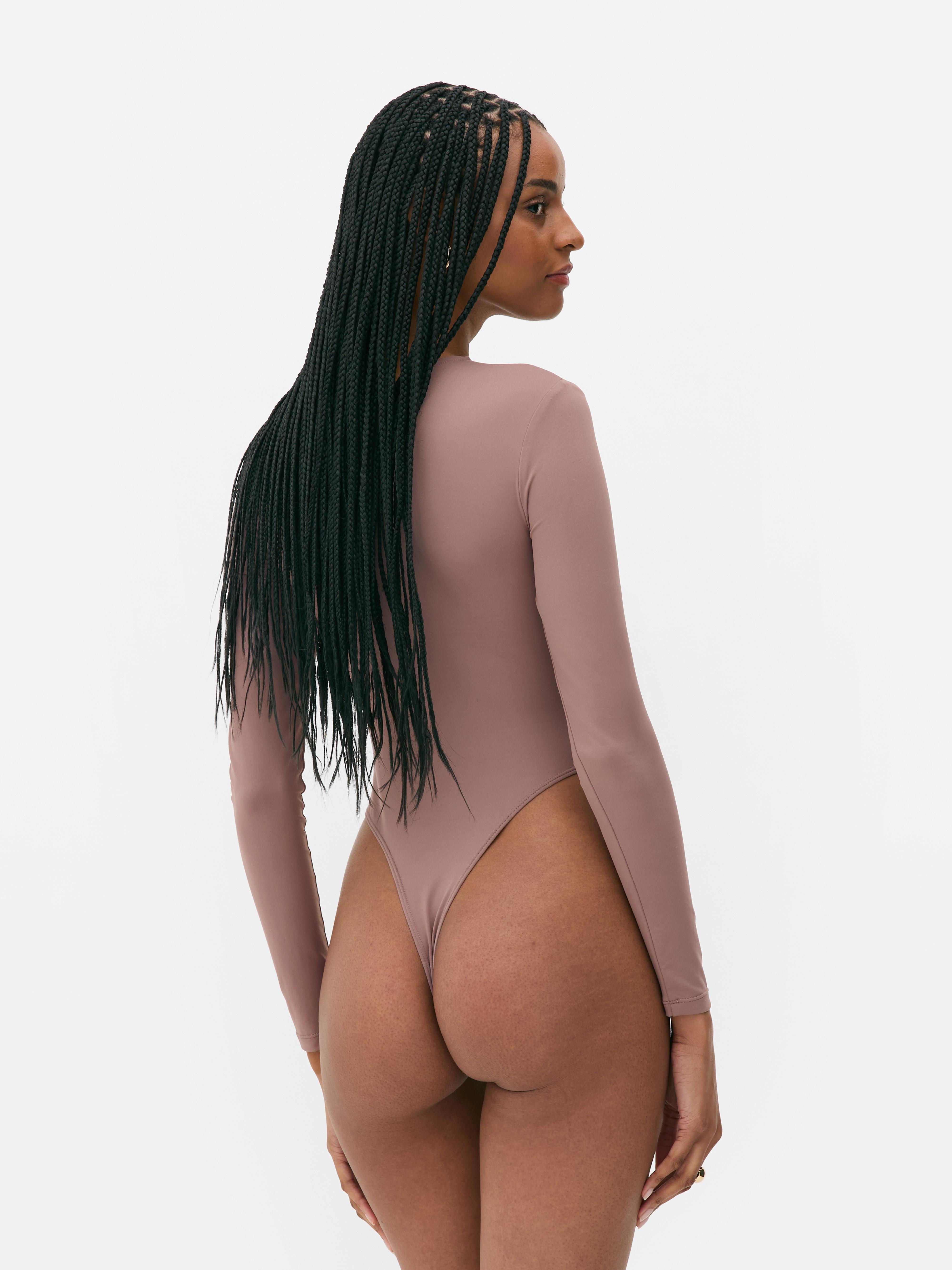 Meet your new favourite base layer. This essential long sleeve bodysuit comes in a soft mocha shade and is made from a smooth, stretchy polyamide blend for a snug, comfy fit. With its classic crew neck, slim silhouette and high-cut leg opening, it’s perfect for tucking into jeans or layering under shirts. The long sleeves keep things sleek and simple, while the body-hugging fit makes it feel like a second skin. Easy, everyday style with a clean finish you’ll keep reaching for.