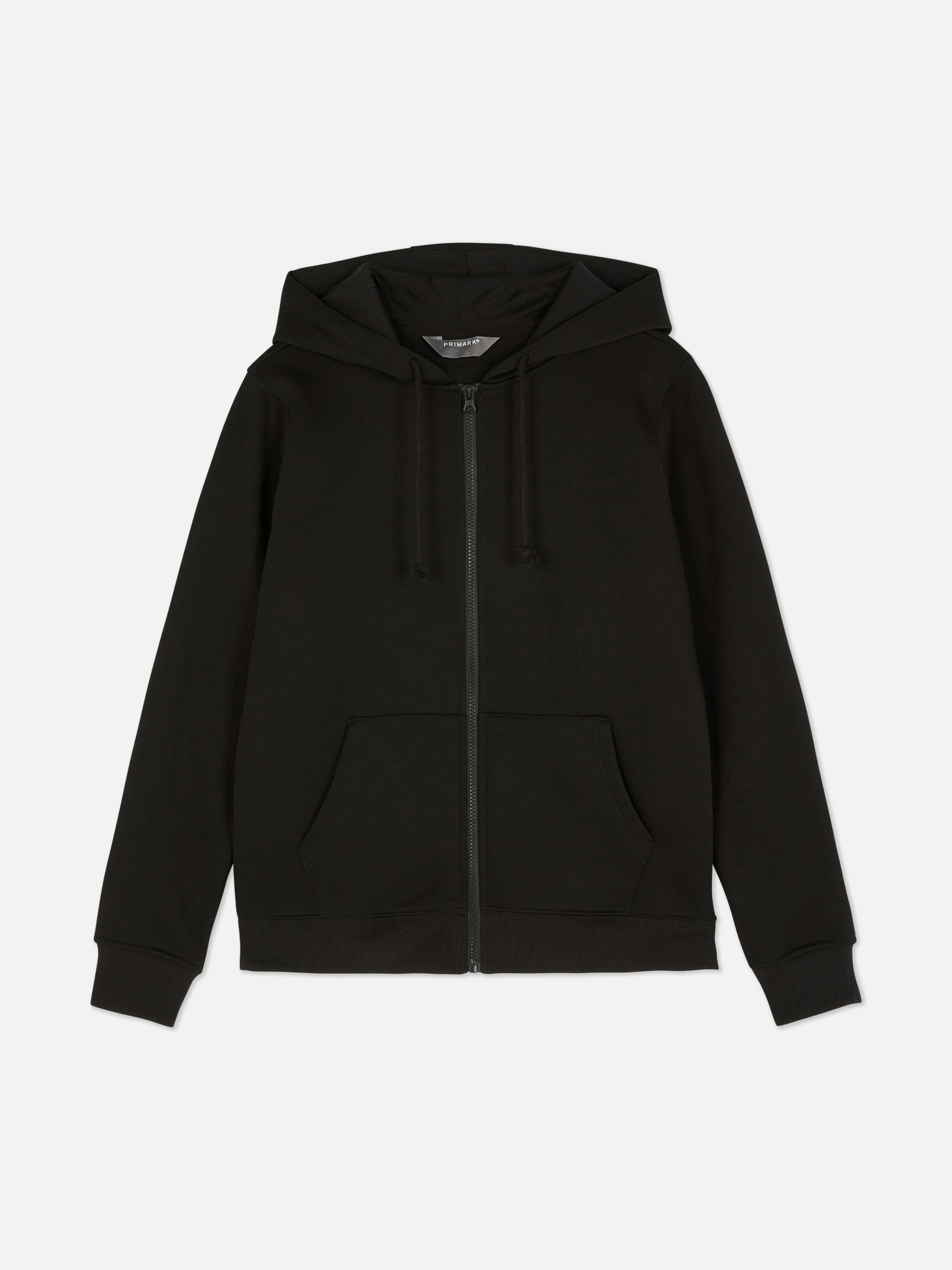 Keep it simple with this essential black zip through hoodie. It’s got all the classic details - an attached hood, full zip front and two kangaroo pockets for your hands or on-the-go bits. The ribbed cuffs and hem help keep the shape, while the versatile black design makes it easy to mix and match with anything in your wardrobe. Cosy, practical and ready for whatever’s on your list today.