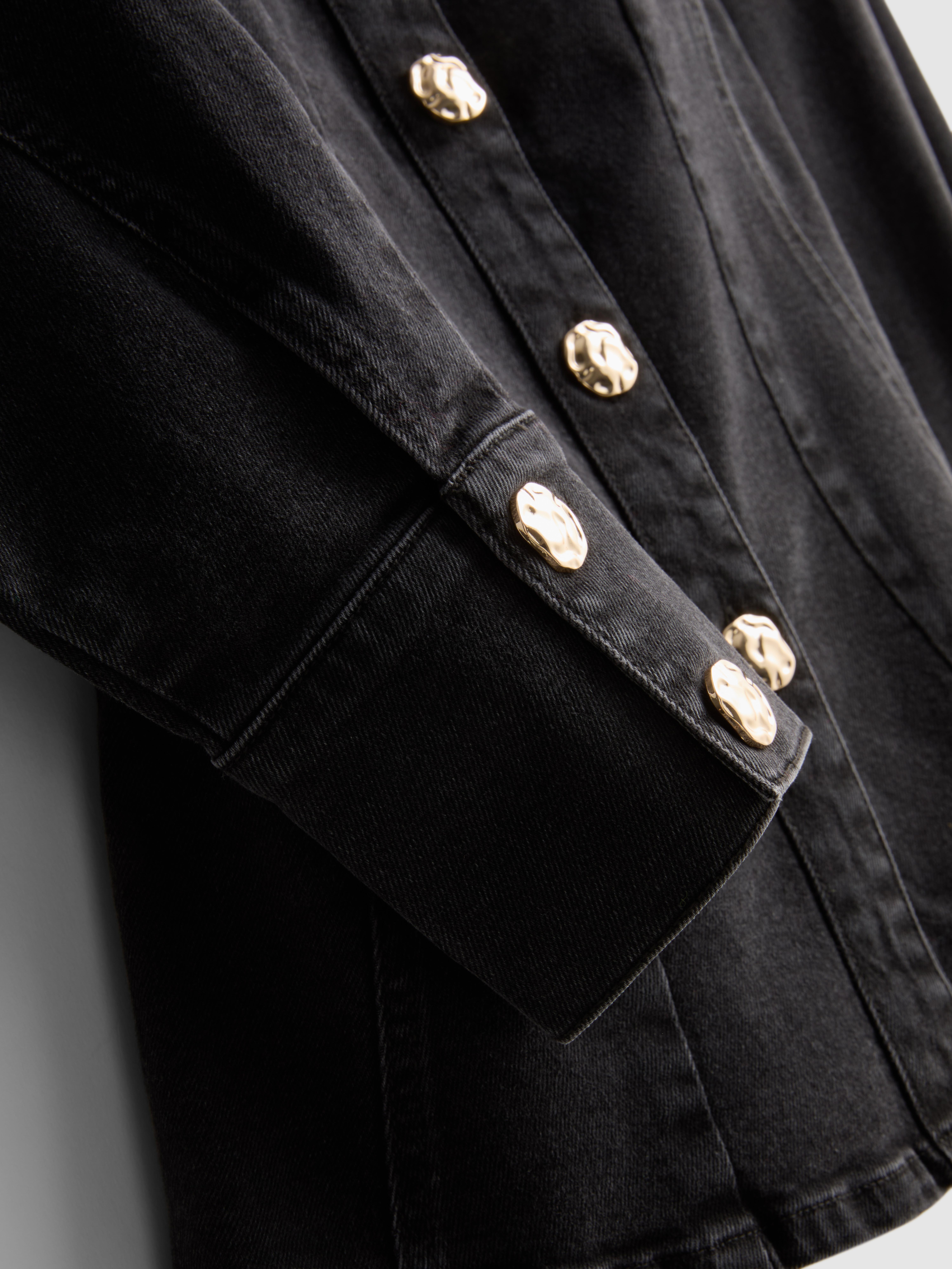 Cotton rich denim shirt in a fitted silhouette with textured metallic buttons