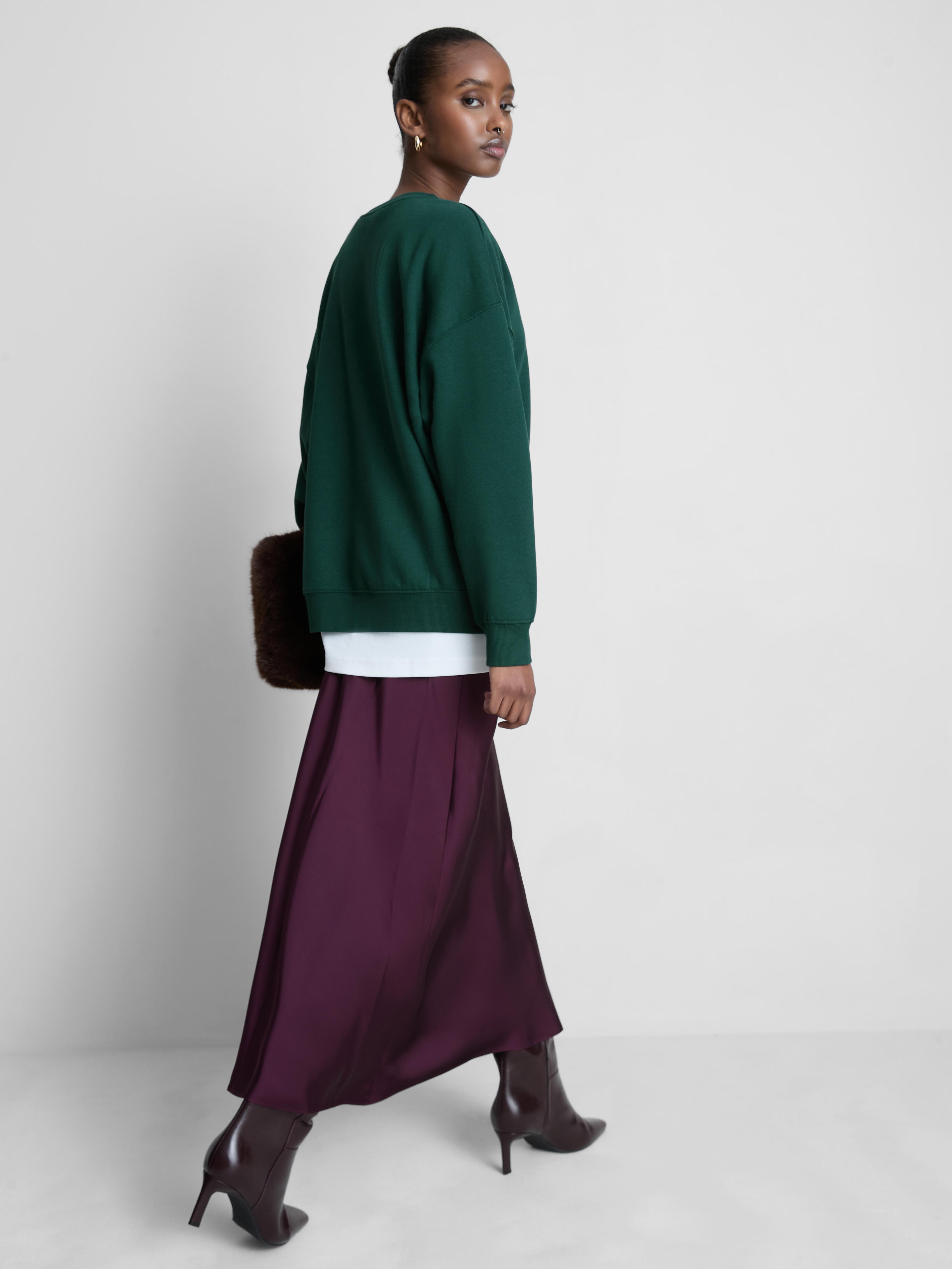 Bring some festive fun to your wardrobe with this graphic Christmas sweatshirt. Made in a deep forest green shade, it’s designed in an oversized fit for easy comfort and a relaxed look. The front shows an adorable teddy bear in a Santa hat with playful “Cosy Season Club” text beneath — perfect for spreading a little holiday cheer. Crafted from soft fabric and finished with ribbed cuffs, hem and neckline, it’s the ideal throw-on for wintry days and all your seasonal plans.