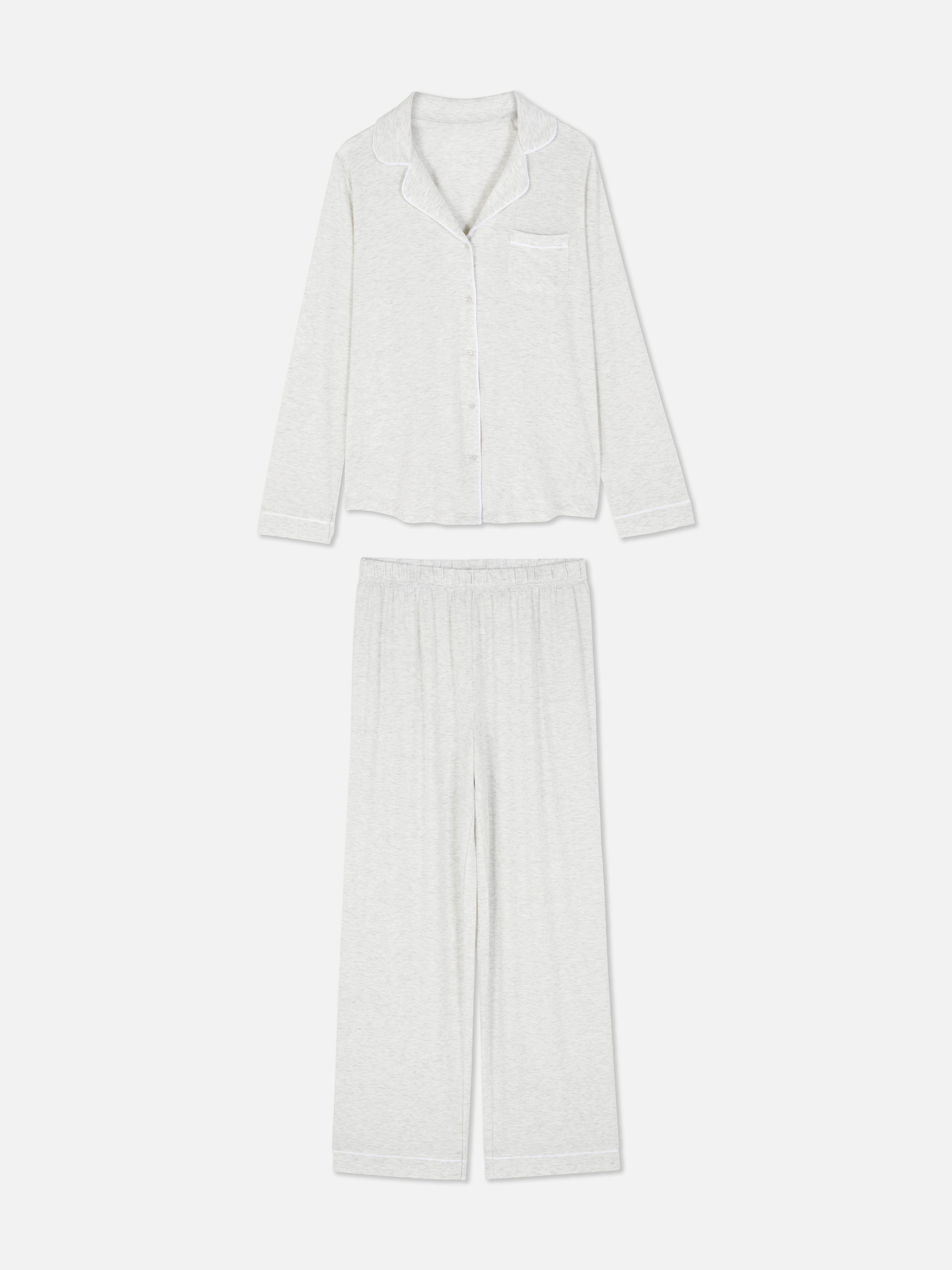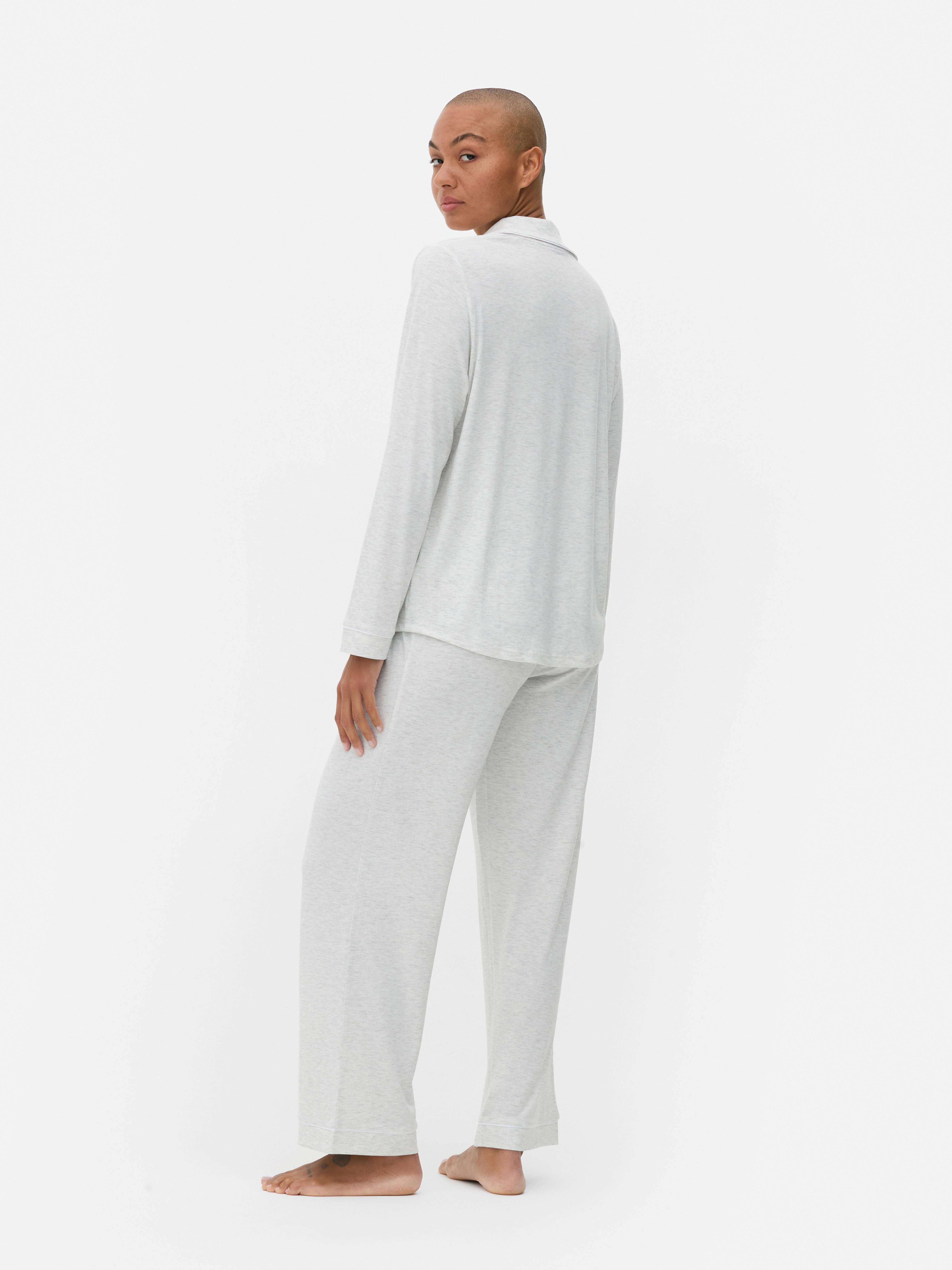 Jersey knit classic shirt-style boyfriend PJs with stretch waist pants