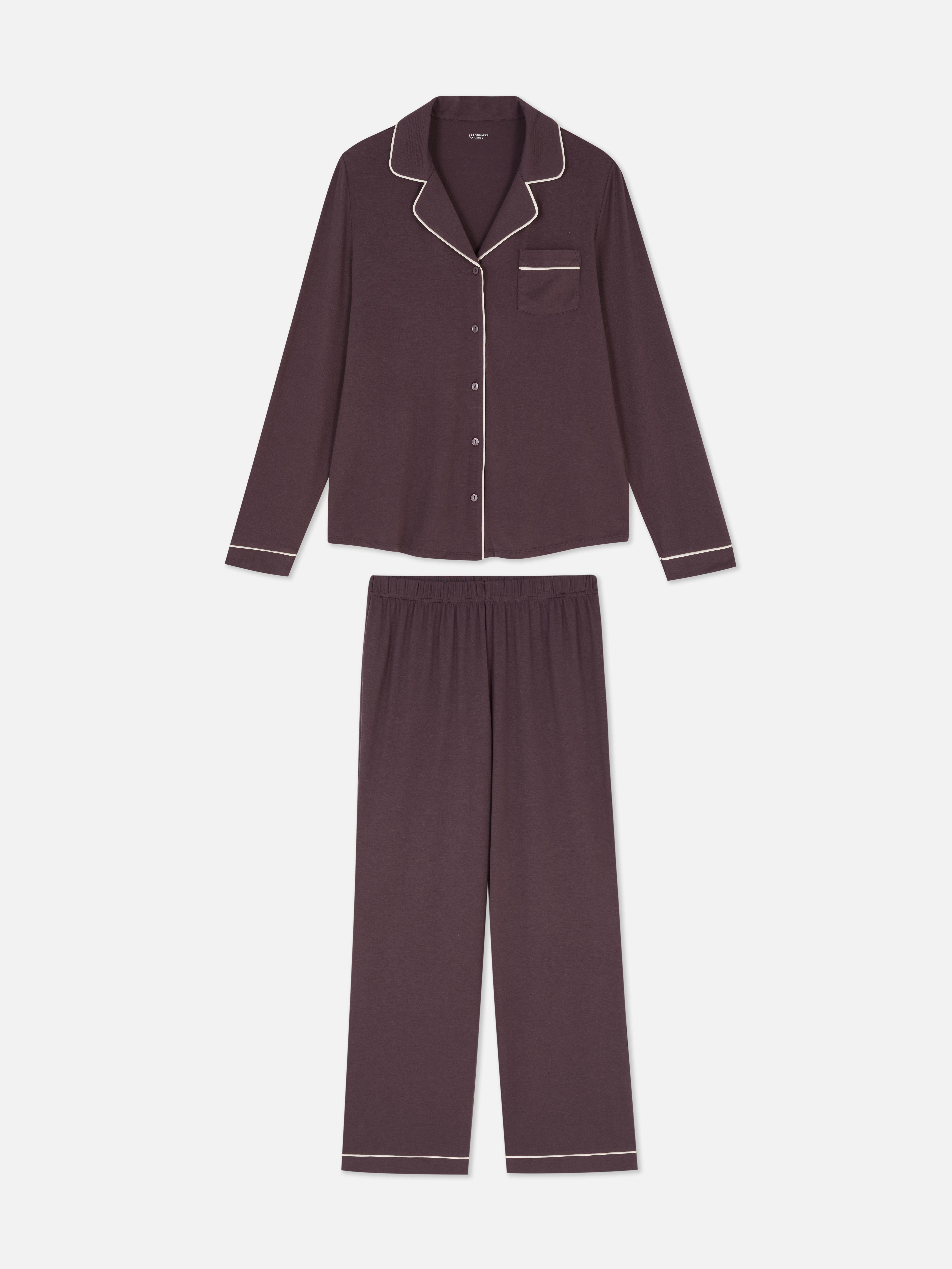 Everyone needs a signature pyjama set that they can reach for over and over and this duo could be the ideal investment or gift for a loved one! Cut to a boyfriend fit, offering a relaxed silhouette with a classic notched collar, long sleeves, breast pocket, and a button front, the nightshirt is a timeless piece while the coordinating straight-leg bottoms with their elasticated waistband complete the look. Both finished with contrast piping that gives them a luxe feel, these lightweight yet cosy PJs are perfect for wearing solo or with an eye mask to his snooze or for styling with fluffy slippers and a robe around the house!